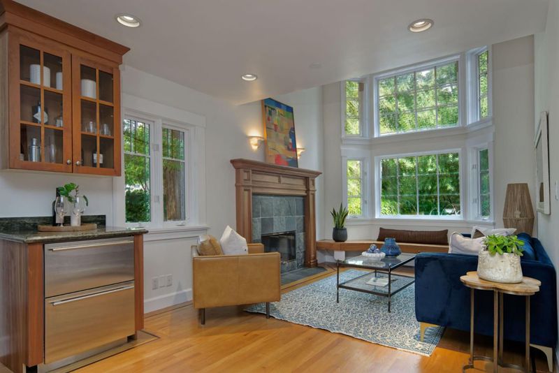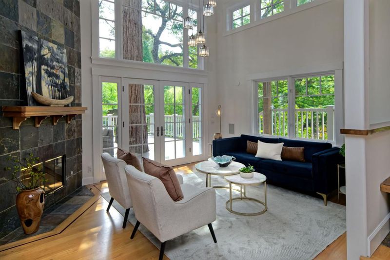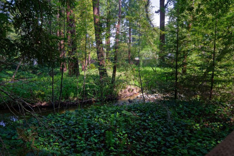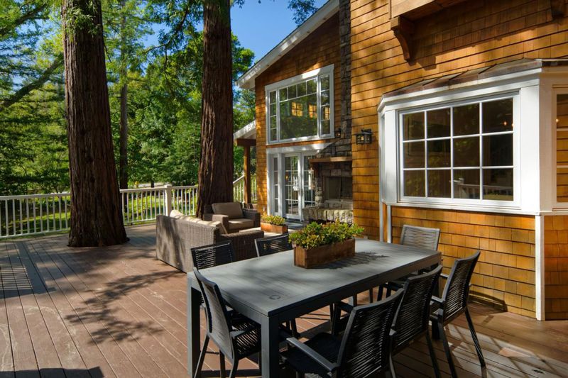 This masterwork of "ultimate bungalow" design evokes the spirit of the iconic Gamble and Gamble, honoring the Arts and Crafts movement's devotion to natural materials and visible joinery. This hand-crafted sanctuary offers a seamless transition from the wild creek-side environment to a sheltered interior. Clad in traditional cedar shingles with overhanging eaves, the home sits in organic harmony with its acre lot. An 18-foot ceiling anchors the Great Hall, its massive scale made intimate by hand-finished built-ins and intricate millwork. From the elegant dining room wainscoting to custom cabinetry, every detail celebrates "honesty of construction." The expansive canopy deck preserves two ancient redwoods that rise through the decking to create a living ceiling, a direct nod to building around nature. The architecture is a dialogue between forest and floor plan. The open-concept kitchen, with Wolf, Viking, and Sub-Zero appliances, integrates into a timeless space illuminated by lighting that highlights natural textures. True to the Craftsman ideal, French doors in the living room, primary suite, and massive upstairs loft dissolve the boundary between shelter and garden. Modern necessities, a Tesla charger, and turf lawn are implemented with a focus on environmental stewardship.