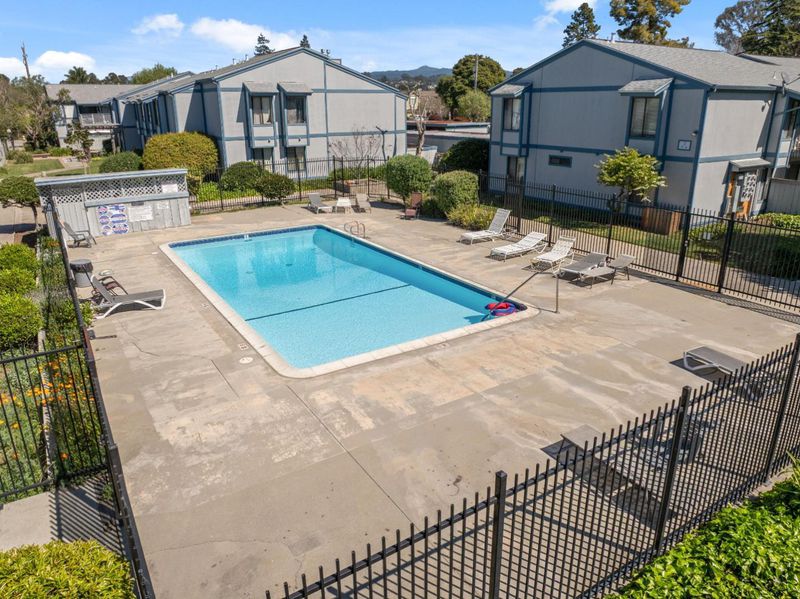 Experience the quintessential beach lifestyle in this turnkey ground floor condo, perfectly positioned to take full advantage of everything the Capitola has to offer! The location within the complex offers a sense of privacy, as there are no neighboring units looking into your space. Inside, the unit is thoughtfully equipped with in-unit laundry and direct access to your dedicated parking spaces. Recessed lighting, no carpets, updated kitchen and bathrooms make this beach pad truly easy living. The private patio also offers a storage closet, perfect for surfboards! Residents also enjoy resort-style amenities including a pool and lush dog-friendly common areas. Close to beloved Capitola Village, enjoy easy access to the first jettys surf breaks, lazy afternoons on the sand, and the vibrant dining scene along 41st Avenue, including local favorites like Zameen and East Side Eatery. Everyday errands are easy with New Leaf grocery nearby, while outdoor enthusiasts will love the trails and mountain biking at the Forest of Nisene Marks just minutes away. Commuters benefit from quick access to Highway 1 and the San Jose Soquel Rd corridor.