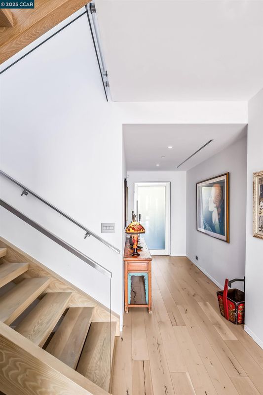 Whoever said “the best views of San Francisco are from Oakland” had this home in mind. It looks across the Bay at the City, Golden Gate, Bay Bridge and Mt. Tam. The kitchen, dining area and living room all look out through 10-ft floor-to-ceiling windows and sliders. The deck is an entertainment hub (with an elite speaker system) for gatherings large and small. The open-concept kitchen has every amenity, including a La Cornue range, Gaggenau steam oven, custom cabinetry, Neolith counters and an island (with seating for 3 at a breakfast bar). A spacious pantry and wine cellar sit adjacent. The Duchateau flooring throughout looks like new. The home offers 4 BRs and 4-1/2 BAs. The bedroom on the lower level is ideal for guests. Upstairs are 3 bedrooms with private baths. The principal suite has unobstructed views of the Bay (as does the adjoining bedroom). Its bath has an oversized rain shower, heated towel racks, soaking tub and dual sinks, all under skylights. Family and friends will gather in the spacious living room, warmed by an oversized fireplace and radiant heating. A well-appointed office on the main floor makes work from home a pleasure. The home also offers a spacious and peaceful garden, 20 solar panels and a car-charging station in the garage.