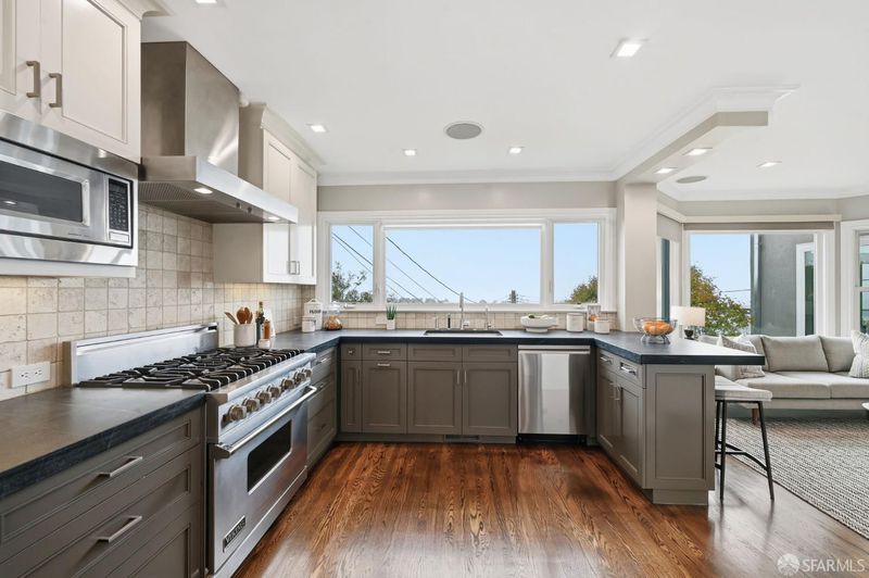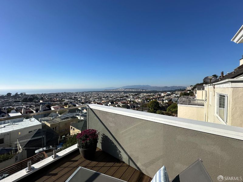 Stunning Upgraded 3-level home with panoramic ocean views in Golden Gate Heights, which is a 5-minute drive to West Portal. Golden Gate Park and Mount Tamalpais views. 5 spacious bedrooms and 4.5 baths. You enter into a beautiful foyer and to the right is a very large living room which extends to a private deck with ocean views. To the left of the foyer, you have a large dining room for 10 people and a large kitchen with ocean views. A family room off the kitchen area. Upstairs you have a beautiful master with its own private deck with ocean views, walk-in closet and large bathroom. On this top floor you have two additional bedrooms and a full bathroom. The lower level has a media room with two bedrooms with their own spa-like baths. Set on a rare double lot. The backyard has a yard for soccer, a basketball court, and a large estimated 350 sq-ft deck. You can easily entertain about 50 people in the backyard. Indoor sq ft 3310 and two decks equaling 210 sq ft. Total sq ft 3570 of indoor and outdoor living. 2-car attached garage with EV charging outlet in the back. Great schools. Lots of parks. Plenty of parking in the front of the house. Transparent pricing at $4.888 Million. Offer date: Thur, Nov 6th at 12pm. The seller expects a full-price, non-contingent offer.