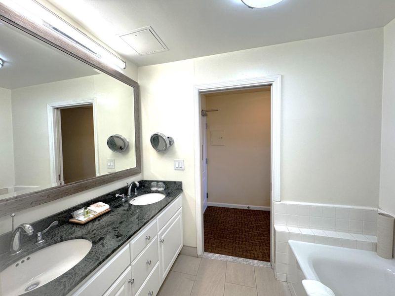 - Double Sinks, Primary - Oversized Tub, Solid Surface, Stall Shower, Tile