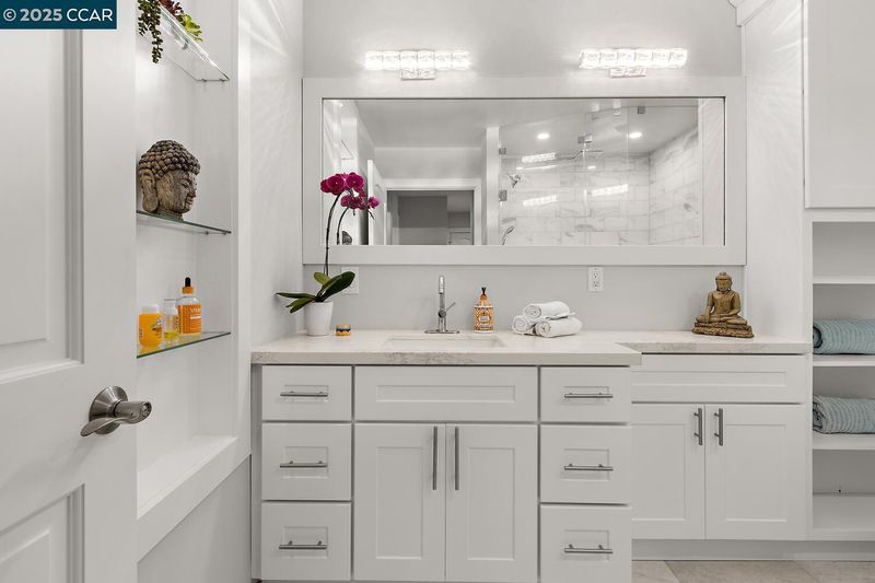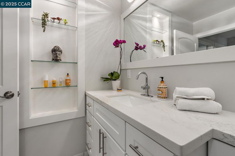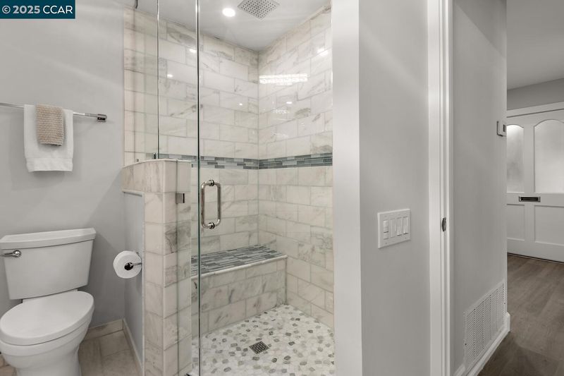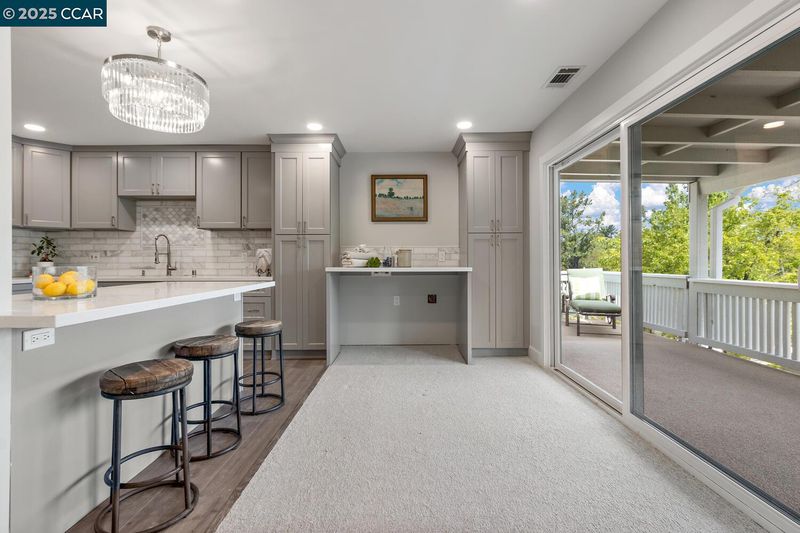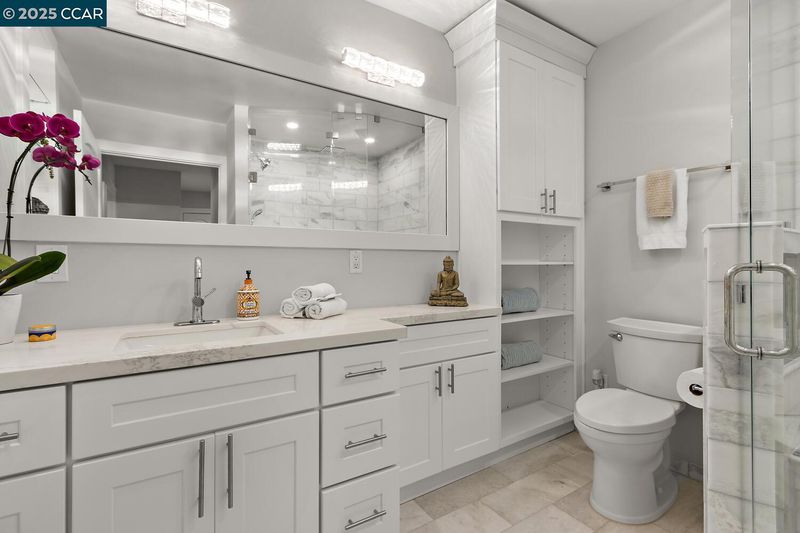 This Upper Sequoia Wrap model is in the Premier 55+ Active Adult Community of Rossmoor Wanut Creek. This two bedroom, one bath, upper unit has a wrap-around deck with plenty of sunshine and room for multiple seating areas. Elegantly renovated throughout with new lighting fixtures and finishes. Renovated kitchen features gas stove, new cabinets, countertops and backsplash. Also includes a granite-topped island with seating and adjacent space for installation of a washer and dryer beneath a granite counter. Renovated bathroom includes new cabinets and fixtures and lighting, and a large glass-enclosed steam shower with three showerheads. Come and see all the improvements made.
