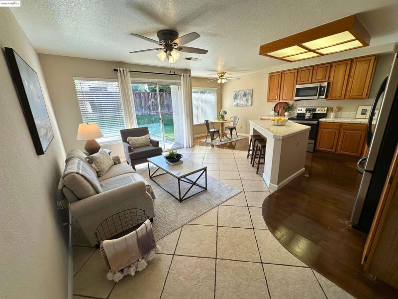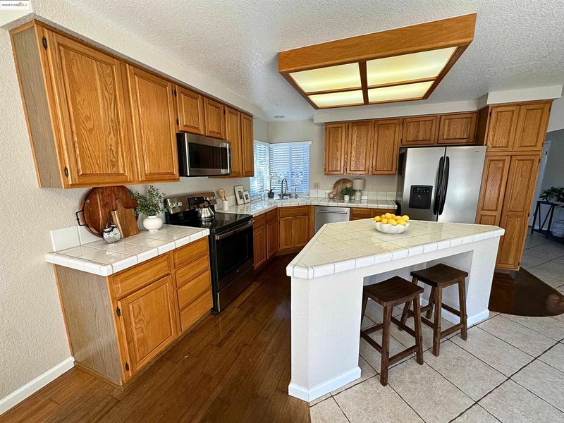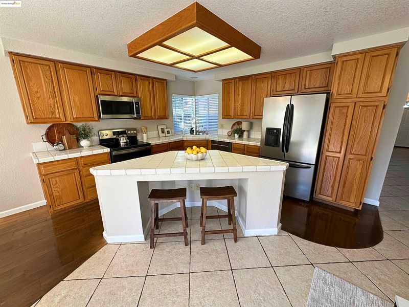 - Dishwasher, Refrigerator, Gas Water Heater, Tile Counters, Kitchen Island