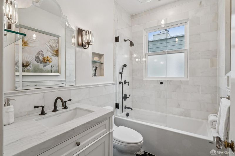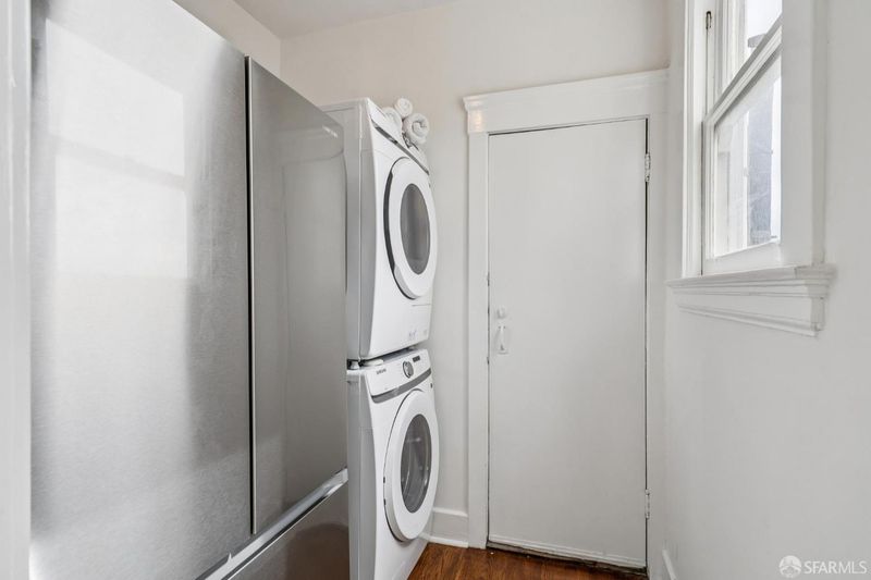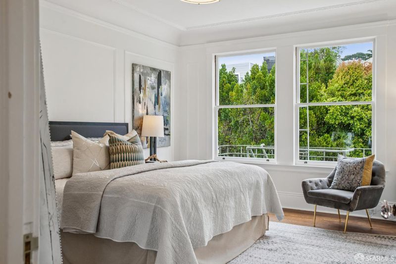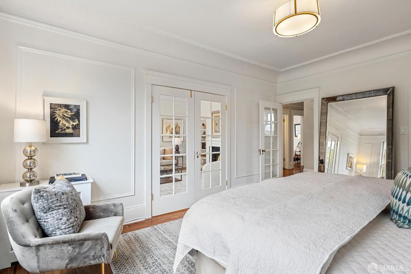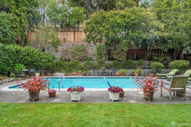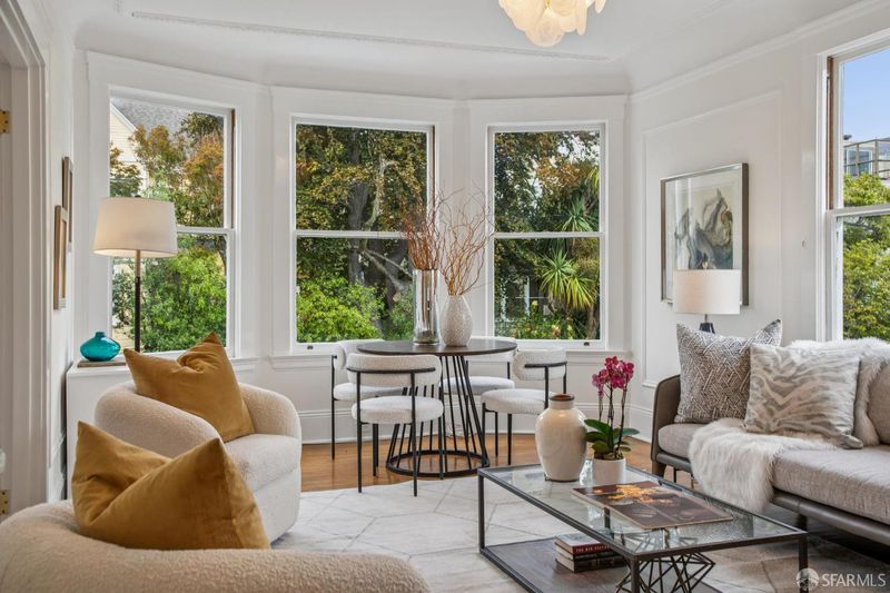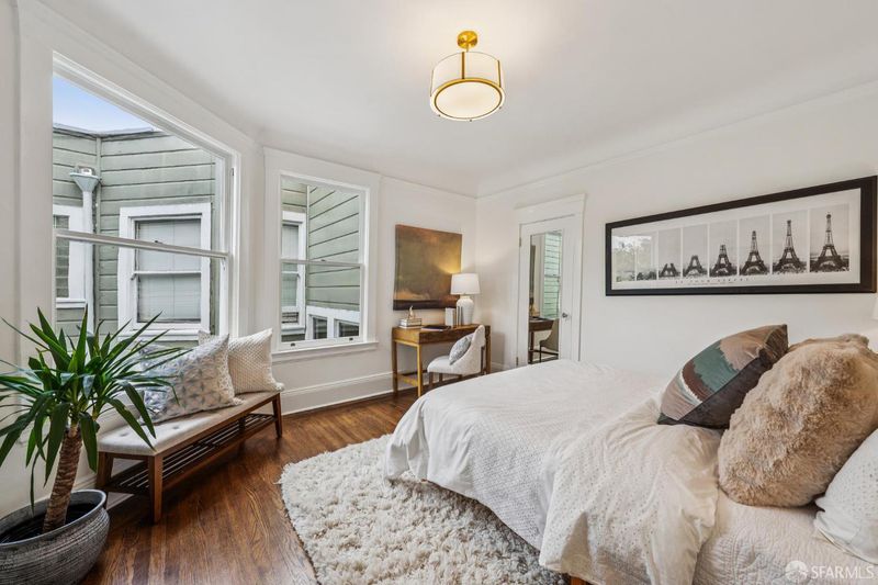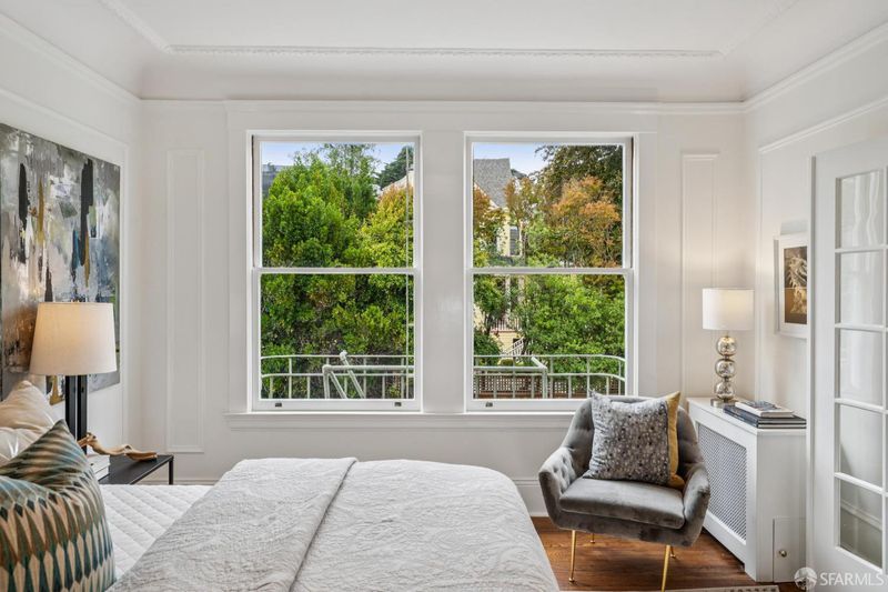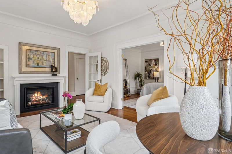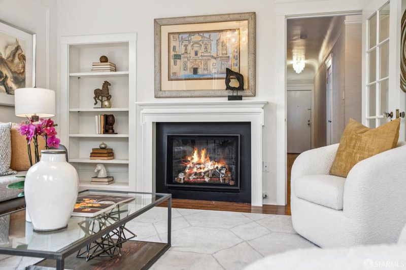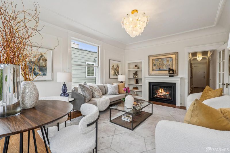 Sun-drenched top-floor corner unit with no shared walls, private garage parking, and access to a poolside backyard retreat. This rare top-floor corner unit has no shared walls, offering exceptional privacy and natural light from windows on three sides. The home blends timeless period details with tasteful modern upgrades: gleaming hardwood floors, built-in bookcases, a working fireplace, and a fully remodeled kitchen featuring Caesarstone quartz countertops, shaker-style cabinetry, vintage built-ins, a generous pantry, and new stainless appliances. Both bedrooms are spacious and sunlit, with abundant closet space. The Ann Sacks tile bathroom is complemented by Waterworks fixtures. Full-size in-unit washer/dryer. Additional storage too. With Alta Plaza Park and Fillmore Street just steps away, this 2-bedroom condo offers an unbeatable mix of location, lifestyle, and long-term value. Note: This is a non-elevator building.