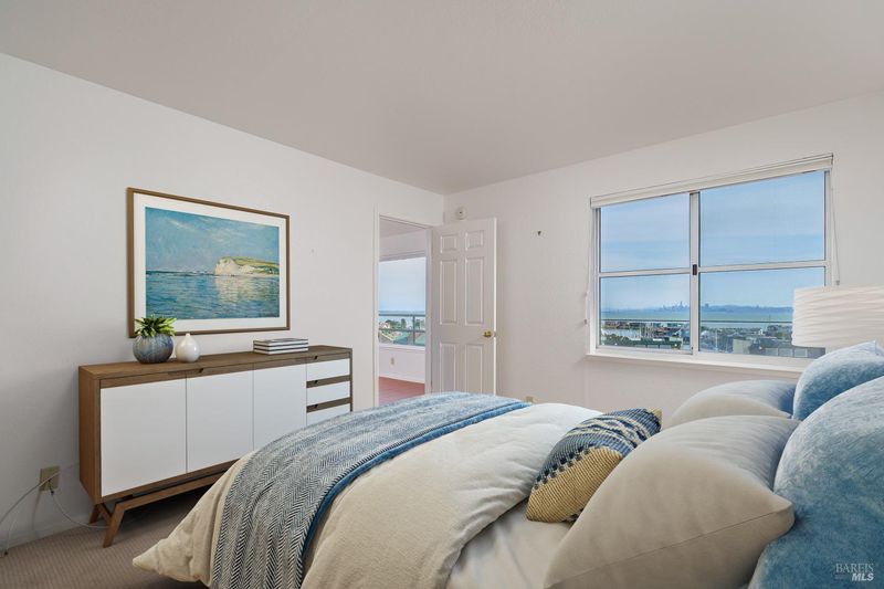 Welcome to 1201 Brickyard Way, Unit 205 an elegant and modern sanctuary offering breathtaking views of San Francisco, the Bay Bridge, and Angel Island. This spacious 1-bedroom, 1-bathroom condo spans 914 square feet, featuring a tastefully renovated bath and upgrades include: freshly painted, new carpet, power shades, and California Closets. Indulge in luxurious community menities, including an Olympic-sized pool, gym, tennis courts, sauna, and spa. Enjoy the convenience of two assigned garage parking spaces, with additional storage and elevators for easy access. EV parking is available, and a community garden offers space to cultivate your winter veggies and flowers. This property is perfect as a second home, pied-de-terre, for downsizing, or as a first-time home buyer opportunity