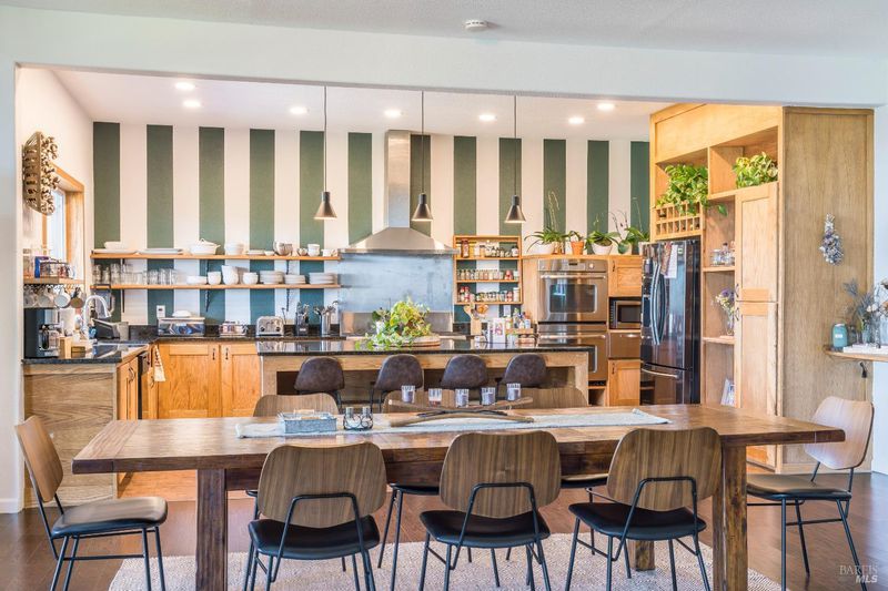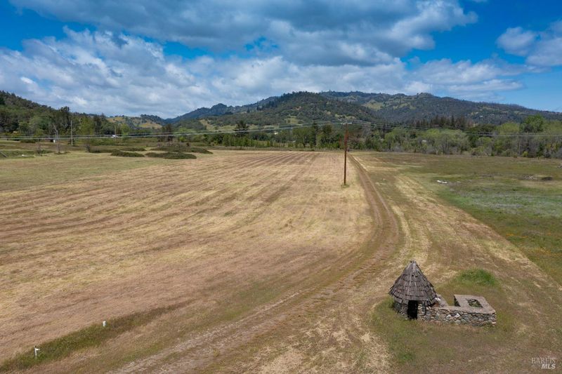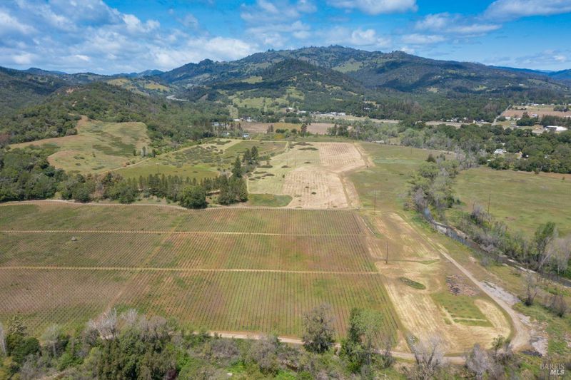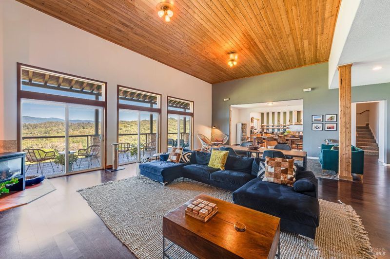 A ranch rooted in local agricultural history, the Flow Ranch couples elevated benches with dynamic vistas & valley ground, ideal for ag development. Taking advantage of the of the ranch's higher ground, the Main Residence delivers expansive views. The open floorplan & lofty ceilings create a grand living space, complete with home theatre, main level primary suite, spacious office & 3 upstairs bedrooms. The adjacent barn includes an upper-level living quarters with 3 additional bedrooms. The barn's lower level includes a conference room & studio workspace. The Vineyard View house brings equally impressive views, with 2 bedrooms & plenty glass. Two large reservoirs offer water storage for ag needs & are ideal for recreation. Heirloom apple orchards & cork tree groves, separate the hillside land from the valley floor where 2 creeks converge & border the approximately 80 acres of plantable land. A rare offering of usable ground, great access, views, abundant water & many improvements.