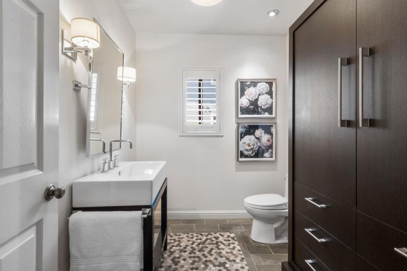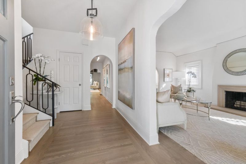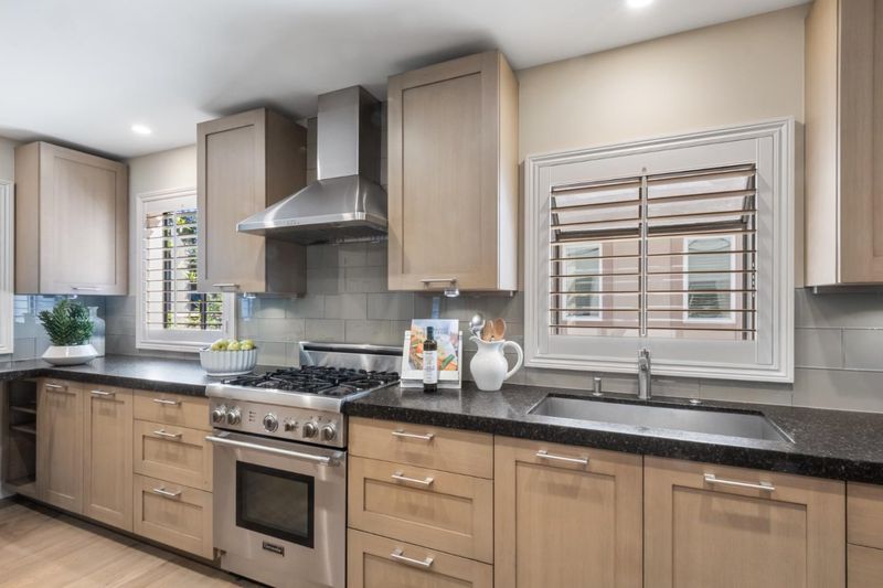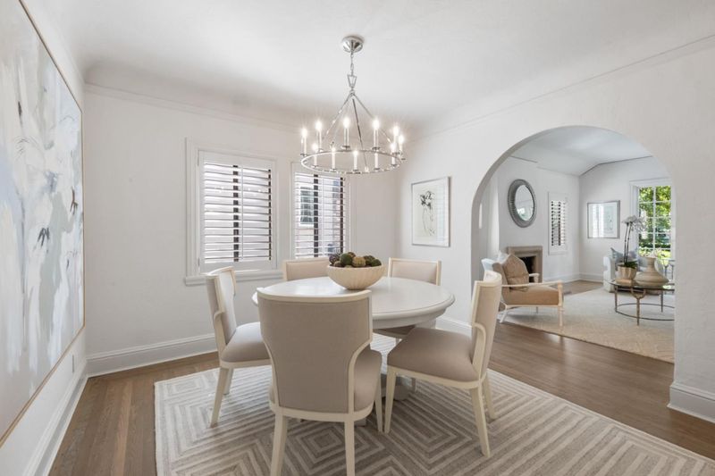 Beautifully updated Tudor on one of the most coveted streets in Easton Addition, set on a generously sized lot with the natural backdrop of a seasonal creek for privacy and serene views. Fine hardwood floors, refined millwork, updated lighting, and plantation window shutters enhance timeless character. The formal living room has a gas and wood fireplace with cast stone surround and a wide arched opening to the formal dining room crowned by a contemporary chandelier. The remodeled kitchen features wood-grain cabinetry, granite counters, glass tile backsplashes, a built-in workstation, center island with seating, and premium appliances. 4 bedrooms and 3.5 baths include an upstairs primary suite, a second suite ideal for guests, and two bedrooms served by a hallway bath. There is a formal powder room, large main-level laundry room, partial basement, upper-level air conditioning, and detached 2-car garage. The tranquil yard has synthetic lawn, a paver stone patio, and elevated deck. This exceptional home is served by excellent Burlingame schools, with Lincoln Elementary just blocks away, and is close to Mills Canyon Park, trails, plus shopping on Broadway.