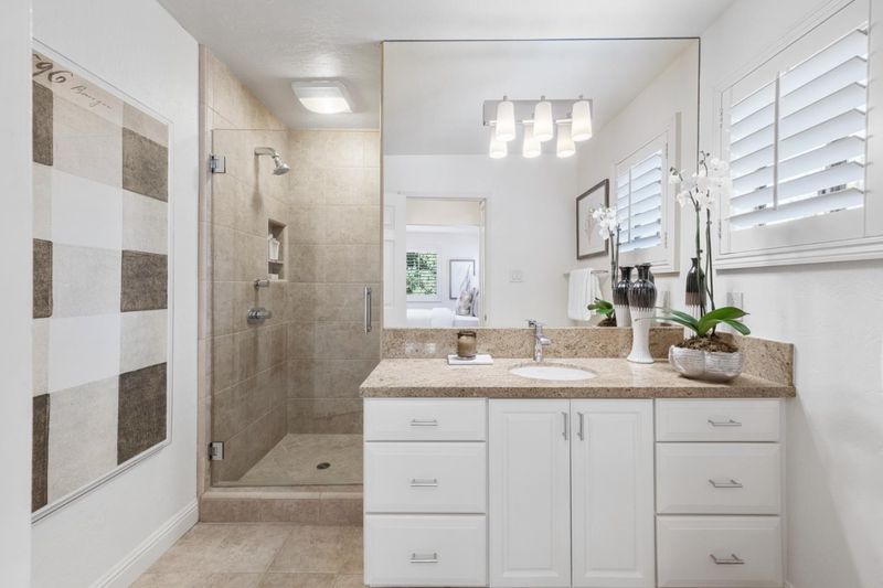 - Double Sinks, Granite, Primary - Stall Shower(s), Shower over Tub - 1, Stall Shower - 2+, Tile, Tub