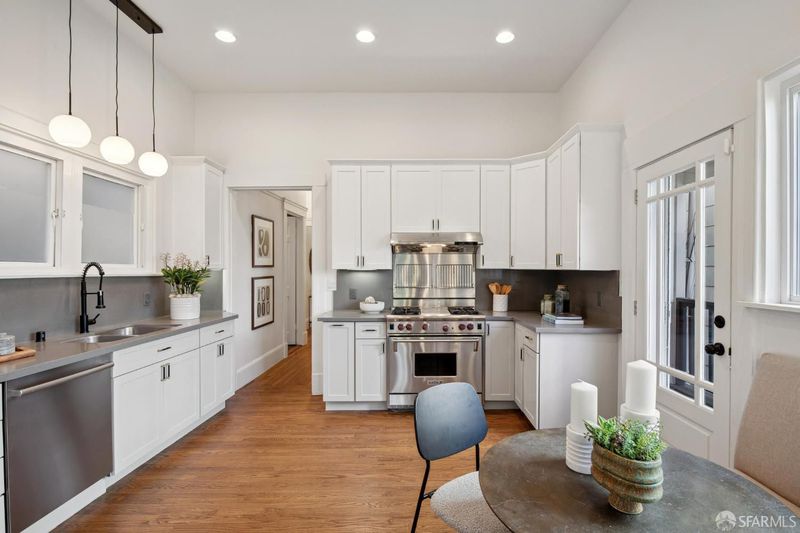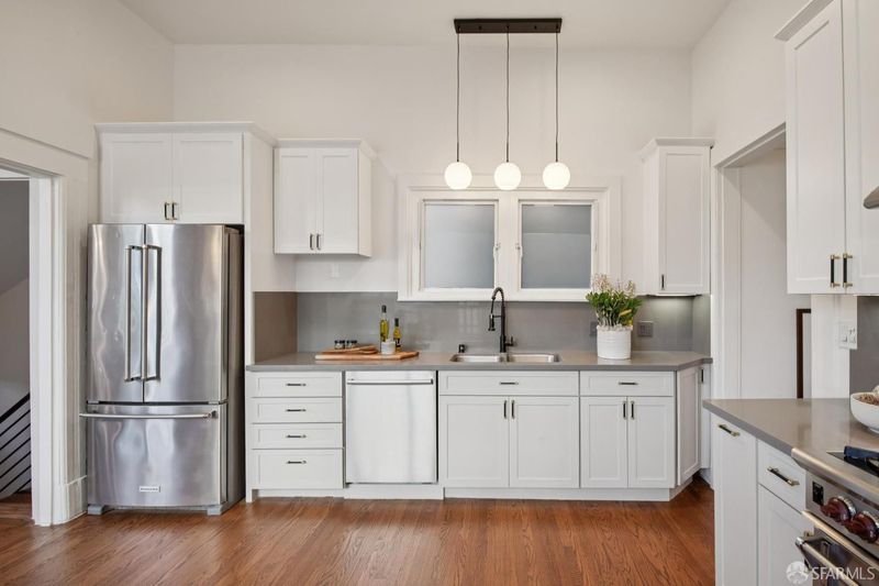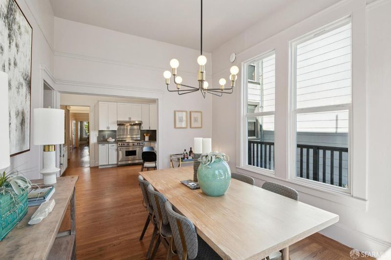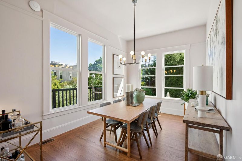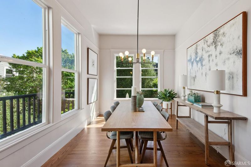 Exceptional 3BD/2BA Edwardian condo, 1,968 sqft (per graphic artist) in a 2-unit building at the heart of Cole Valley. Airy, bright, and full of original period character. The main level dazzles with soaring ceilings, hardwood floors, abundant natural light, and sunset views over Tank Hill and Sutro Tower from the formal dining room. Updated kitchen features quartz countertops, Wolf gas range, and Bosch dishwasher, opening to a private deck. Lower-level primary suite includes a gas fireplace, generous closets, direct garden access, and a spa-inspired bath with jetted soaking tub, dual vanities, and standalone shower. In-unit laundry. Manicured shared garden. Deeded garage for 2 to 3 cars, home gym space, and ample storage. HOA: $300/mo. Walk Score 96. One block to N Judah, steps to Golden Gate Park, Zazie, Lovely's, UCSF, and the best of Cole Valley. A true San Francisco original.