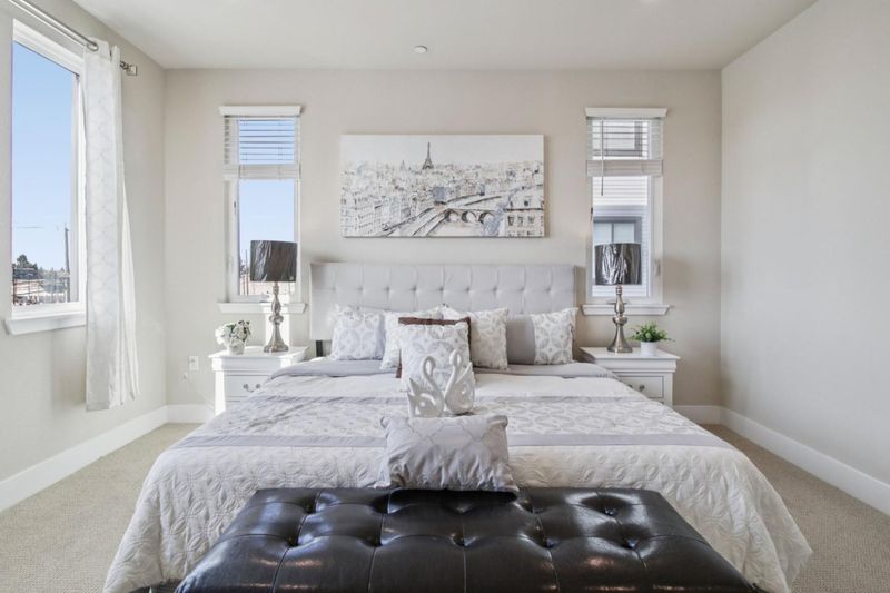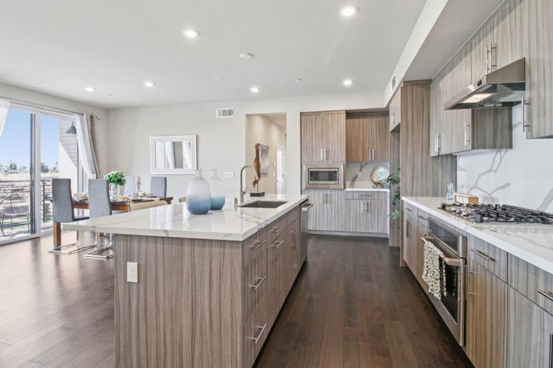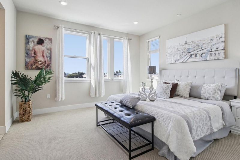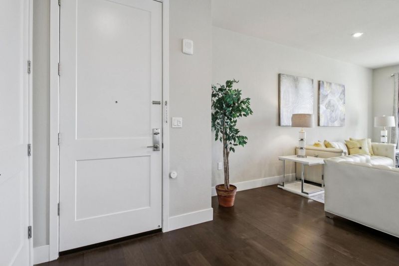 Experience California living in this beautifully designed single-story luxury condo. With an open layout and abundant natural light, this modern home features a chef's kitchen with ceiling-height custom cabinetry, quartz island, and built-in stainless steel appliances. The spacious primary suite includes a large walk-in closet and a sleek bathroom with dual vanities and a glass-enclosed shower. Additional highlights include owned solar panels, a 2-car tandem garage with an EV charging outlet, and extra storage space. Located in the highly desirable Innovation community, residents enjoy access to a clubhouse, BBQ area, fitness center, and swimming pool. Conveniently close to parks, top schools, grocery stores, restaurants, and within walking distance to BART. This move-in-ready home blends comfort, efficiency, and location.