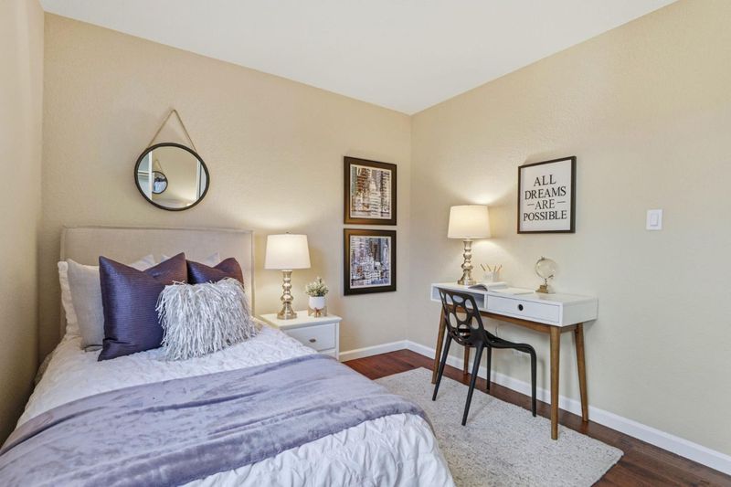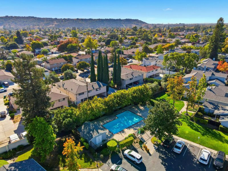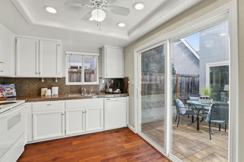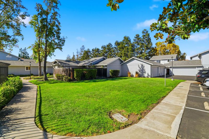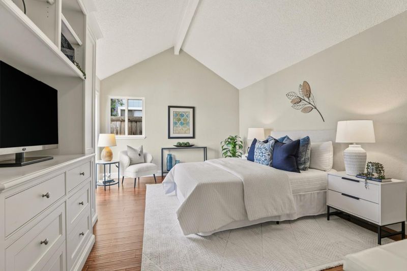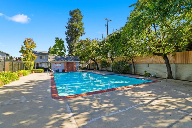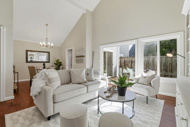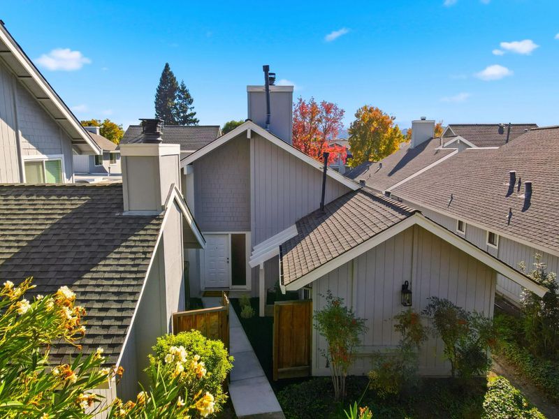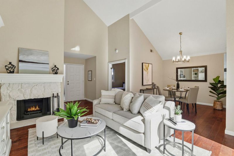 Discover this move-in ready townhouse offering the perfect blend of privacy and low-maintenance living. This meticulously updated home features a private entry and charming paver courtyard, creating your own outdoor sanctuary accessible from the kitchen, living room, and primary suite. Inside, gorgeous hardwood floors flow throughout the freshly painted interior. The open-concept living room showcases soaring vaulted ceilings, a cozy gas-ignite fireplace, and custom built-in storage. A stunning chandelier elevates the dining area. The updated kitchen boasts granite countertops and abundant cabinetry with seamless indoor-outdoor flow to your private courtyard. The thoughtfully designed floor plan includes three spacious bedrooms and two luxurious bathrooms featuring new quartz countertops and sinks. The primary retreat offers dramatic vaulted ceilings, custom built-ins, and direct courtyard access. Enjoy amenities including a sparkling community pool, attached two-car garage, and ample guest parking. Sharing only a garage wall ensures maximum privacy. This highly desirable Blossom Valley location provides easy access to major commuter routes, premier shopping, and diverse dining. This turnkey gem offers unbeatable comfort, convenience, and quality for today's discerning buyers.