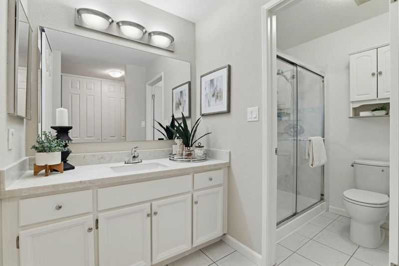 - Primary - Stall Shower(s), Shower over Tub - 1, Solid Surface, Tile