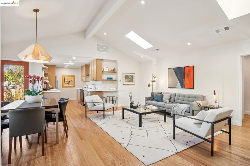 Beautifully appointed and spacious South Berkeley home features one-level living and a stunning garden! Every inch of this home has been renovated (with permits) in 2025, and it shows. From the vaulted ceiling with skylights to the elegant wood kitchen cabinets, from the expansive en suite bathroom to the ideal layout, this home leaves little to be desired. Three bedrooms and three bathrooms offer space for all, and this home features ample storage both inside and in the gracious attached two-car garage. The verdant garden features spaces for dining al fresco and kicking a ball around, the perfect space to entertain and enjoy the indoor-outdoor connection! Updates in 2025 include new roof + skylights, 200 amp panel and electrical, all new dual-pane windows, stainless steel appliances, new furnace, structural and seismic work per City of Berkeley requirements, and more! Near local favorites like San Pablo park, Ashby BART, Berkeley Bowl West, and Berkeley Ironworks climbing gym, this home is perfectly located.