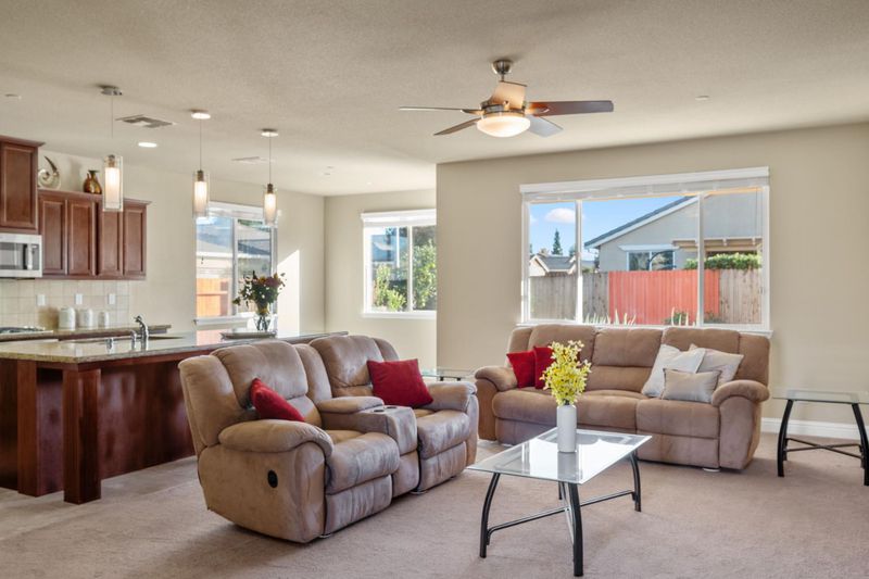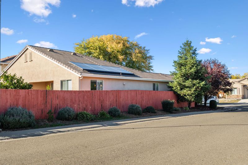 Looking for a home that's truly move-in ready? Come see this beautiful single-story home. You'll enjoy the spacious open kitchen with a large granite island. Perfect for cooking, entertaining, or just enjoying a cup of coffee in the morning. The front and back yards are beautifully maintained, offering great curb appeal and a relaxing outdoor space. Step out onto the covered patio and unwind after a long day. The primary suite features a separate tub and shower, dual sinks, and a walk in closet. Inside, you'll find a convenient indoor laundry room, and the home also includes solar panels, a tile roof, and a large two car garage. This property has been well cared for and it shows clean, bright, and welcoming from the moment you walk in. Schedule your showing today!
