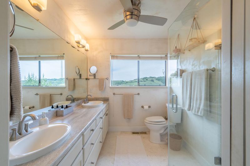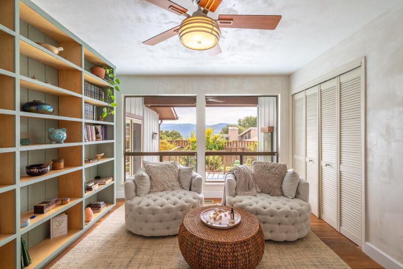 Mid Carmel Valley Views & Privacy Design meets serene natural beauty in this rare late mid-century gem, nestled on nearly an acre in the tranquil Rancho Tierra Grande neighborhood. Perched above a scenic canyon, this 2,308 sq. ft. residence offers panoramic views of the canyon floor and lush oak forests from every vantage point. Every inch of the interior has been meticulously elevated with custom flooring, Modern Masters wall finishes, and designer fixtures. The three spacious bedrooms include a primary suite featuring floor-to-ceiling glass and a private deck overlooking the estates rugged landscape. The spa-caliber ensuite boasts custom marble showers and a soaking tub positioned perfectly for canyon sunsets. A dedicated office with garden views and backyard access sits adjacent to the suite. Additional accommodations include a second bedroom with Jack-and-Jill closets and a private deck, while the third bedroom offers majestic views of the St. Lucia Mountain Range, doubling perfectly as a den or library.
