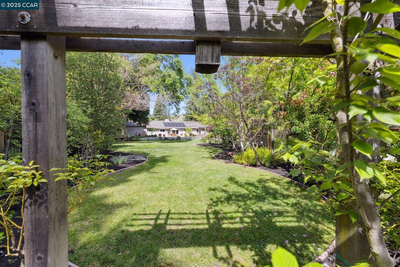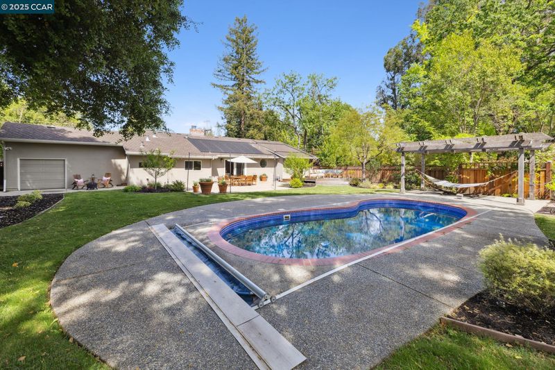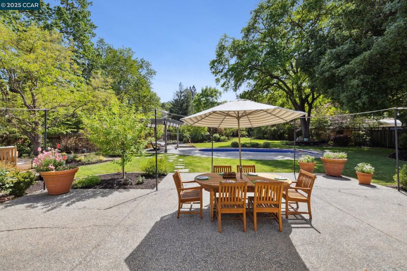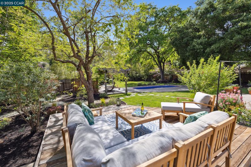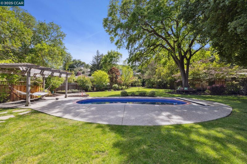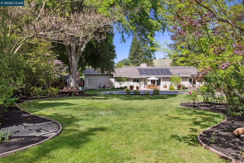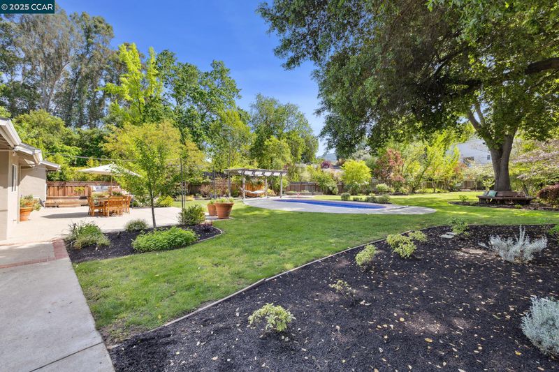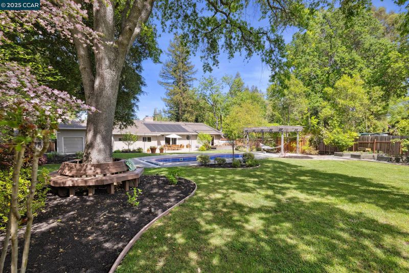 Nestled on one of the prettiest, tree-lined streets in Westside Alamo, this stunning 1 story home sits on an expansive, flat lot of over half an acre designed for year-round enjoyment. A true gardener’s paradise, the property features raised beds, a playhouse, vast lawn and lush landscaping with ample room to expand the home. The chef’s kitchen is the heart of the home, with cathedral ceilings, stone counters, custom cabinetry, a built-in refrigerator, wine cooler, and gas range—all centered around a massive island perfect for entertaining. It flows seamlessly into the family room and out to the backyard oasis complete with a sparkling pool. Inside, this fine home exudes quality with new wide-plank wood floors throughout and stylishly updated bathrooms. The oversized owner’s suite offers soaring ceilings, generous closet space, a refreshed bath, and serene garden views. Located in one of Alamo's most desirable neighborhoods close to Downtown Alamo, Danville, the Iron Horse Trail, Las Trampas Ridge, top-rated schools and prime commute routes, this exceptional property blends luxury, tranquility, and convenience in perfect harmony.