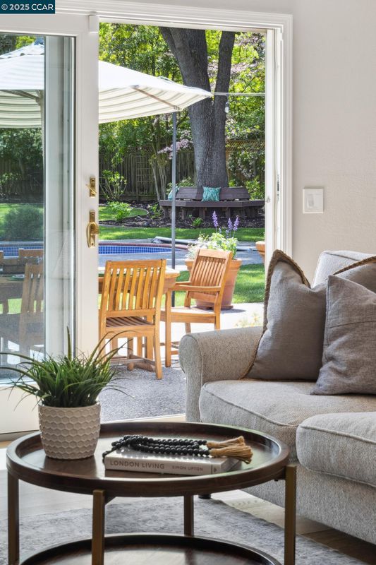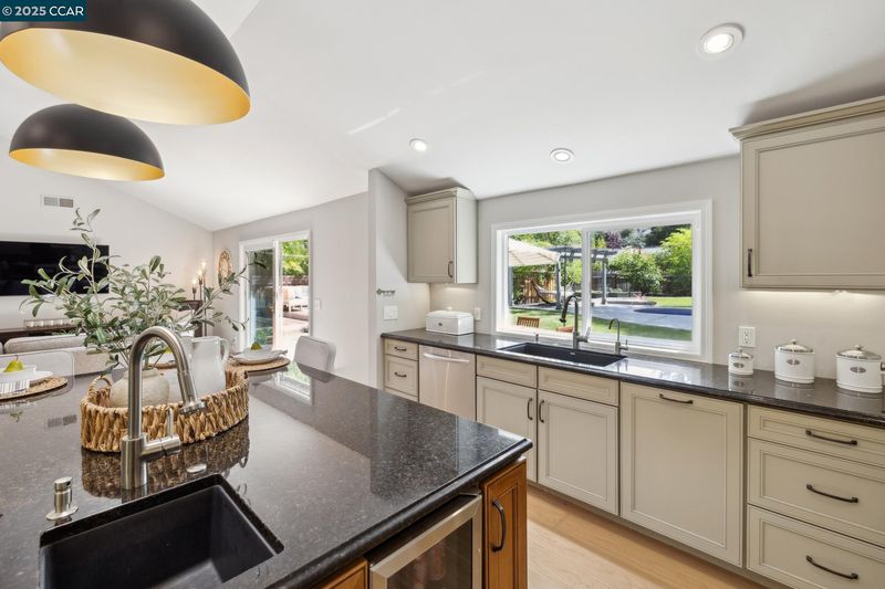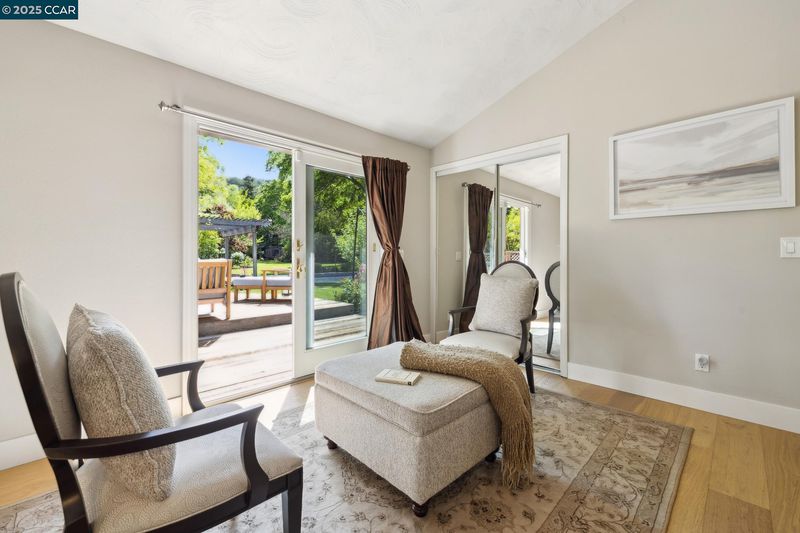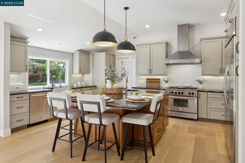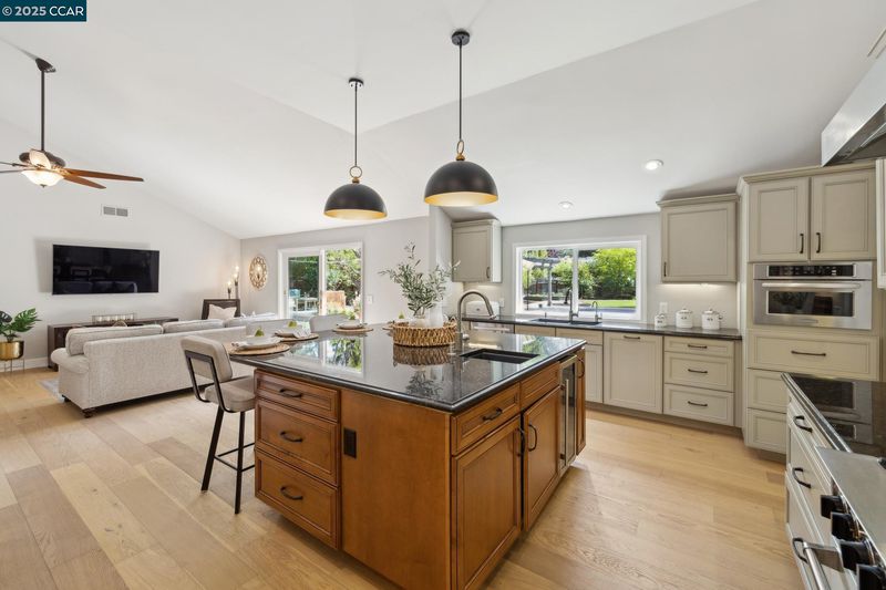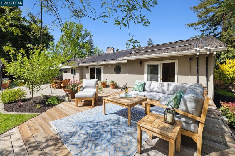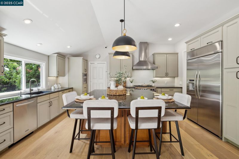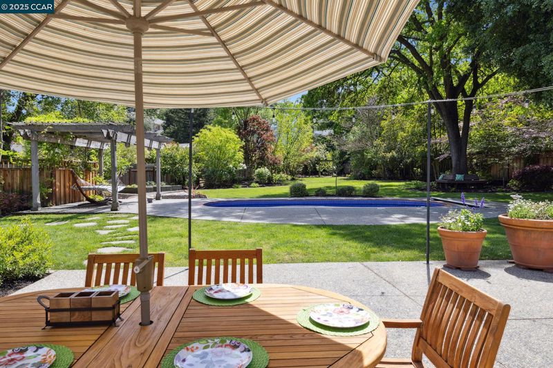 Nestled on one of the prettiest, tree-lined streets in Westside Alamo, this stunning 1 story home sits on an expansive, flat lot of over half an acre designed for year-round enjoyment. A true gardener’s paradise, the property features raised beds, a playhouse, vast lawn and lush landscaping with ample room to expand the home. The chef’s kitchen is the heart of the home, with cathedral ceilings, stone counters, custom cabinetry, a built-in refrigerator, wine cooler, and gas range—all centered around a massive island perfect for entertaining. It flows seamlessly into the family room and out to the backyard oasis complete with a sparkling pool. Inside, this fine home exudes quality with new wide-plank wood floors throughout and stylishly updated bathrooms. The oversized owner’s suite offers soaring ceilings, generous closet space, a refreshed bath, and serene garden views. Located in one of Alamo's most desirable neighborhoods close to Downtown Alamo, Danville, the Iron Horse Trail, Las Trampas Ridge, top-rated schools and prime commute routes, this exceptional property blends luxury, tranquility, and convenience in perfect harmony.