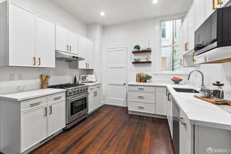 Step inside this beautifully preserved Victorian where classic architecture meets modern updates. Soaring coved ceilings, curved bay windows, and a decorative fireplace highlight timeless craftsmanship, while refinished wood floors and crisp interiors create a fresh, inviting feel. The chef’s kitchen with quartz counters, stainless-steel appliances, and new cabinetry flows into a spacious dining area that opens to a private garden deck — perfect for coffee, entertaining, or unwinding in the sun. Located in the heart of NoPa, just steps from Divisadero’s lively cafés, shops, and parks — this home offers the best of historic charm and city living.