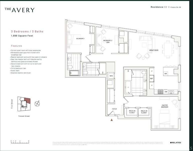 Don't miss your opportunity to own a 3 bedroom in The Avery. This spacious residence features a windowed kitchen and corner great room perfect for entertaining, combining luxury and comfort. Developed by Related, designed by OMA, The Avery is a sculpted glass tower soaring 618' tall into the SF skyline. Residences feature expansive layouts with floor-to-ceiling windows that emphasize grand views of SF Bay, Bay Bridge, & city skyline. Acclaimed Clodagh Design chose warm wood tones & authentic marbles to create stunning custom interiors. Open gourmet kitchens boast premium Miele appliances & spa-inspired bathrooms feature custom dual vanities & marble clad walls. Amenities & services include attended private lobby, 24/7 valet parking, fitness studio, pool, entertainment lounges & more.