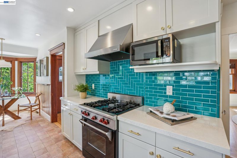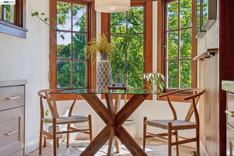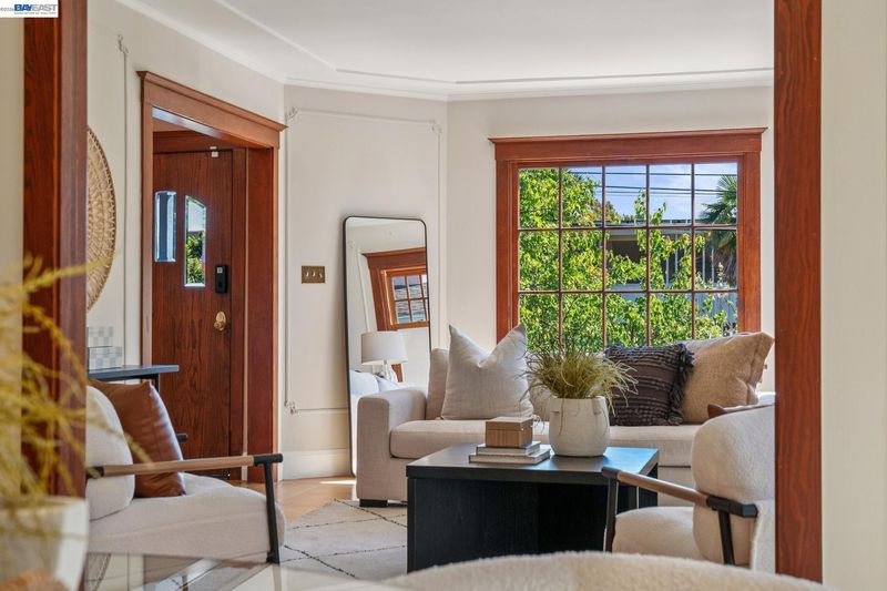 Welcome to this charming 1920s Craftsman, where timeless character meets modern comfort. This beautifully maintained home offers 2 serene garden-view bedrooms, 2 bathrooms, and a versatile bonus room with expansive skylights—perfect as a third bedroom, primary retreat, or home office. Updated kitchen features premium Wolf and Bosch appliances, generous counter space, and a cozy dining nook framed by large windows that fill the space with natural light—ideal for morning coffee or relaxed meals. Sunlight pours into the inviting living and dining areas, showcasing the home’s vintage charm with original wood windows, oak floors, and classic wall sconces. A convenient stackable laundry area includes additional storage that can easily function as a pantry. Step outside to your private, fenced outdoor retreat with a spacious deck, low-maintenance artificial lawn, and lush, mature landscaping—perfect for entertaining or unwinding. An attached garage with interior access plus a driveway provides valuable off-street parking. Located just minutes from Lake Merritt, with easy access to BART, highways, farmers markets, and an abundance of local dining and shopping options—this home offers the best of Oakland living!