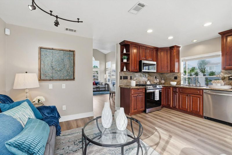 Beautifully upgraded corner lot home with drought resistant plants, great curb appeal! Vaulted ceiling, abundant windows to flood with natural lights. New waterproof durable fiber wood flooring throughout. Completely updated bathrooms. Walk in shower. Central heating and A/C to enjoy your home all year round. Two alternating reusable air filter for the HVAC system. Osmosis water filter in kitchen. Mirror closet doors & large mirrors in dining give spacious feeling. Gas fireplace with option for wood burning. Schlage locks. Single key to access house, both sheds, gates. Alarm and camera system. Wall fence for highest privacy. Large low maintenance backyard to enjoy the outdoors in peace or entertain special guests. Great for BBQ. Super secure Medco lock mailbox. Custom decorative security gates. Double swing side gate to fit mini-RV trailer in the side yard, ready sewer hookup. Discreet pet relieve area. Conveniently located near variety of shops, Costco, Ranch 99, H-Mart, Sprouts, great restaurants from casual eating to fine dining, gourmet coffee & tea. Minutes to the post office, Great Mall, the Flea Market, VTA, BART, SJ Municipal Golf Course, SJ Int'l airport. Walk to Townsend Park with workout stations, tennis courts, children's playgrounds.