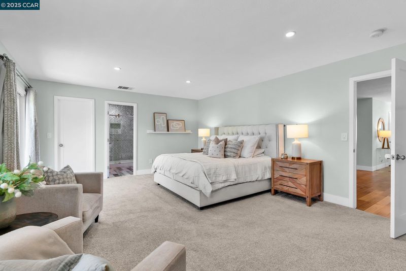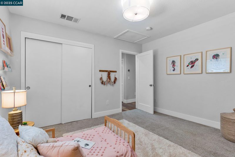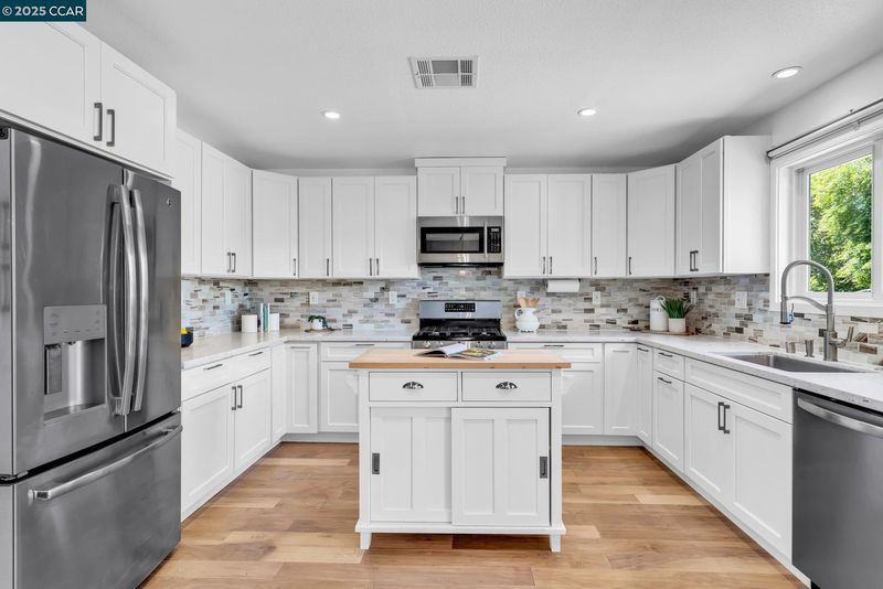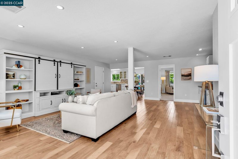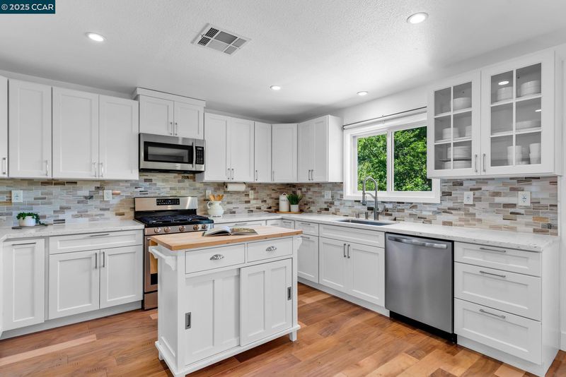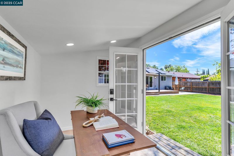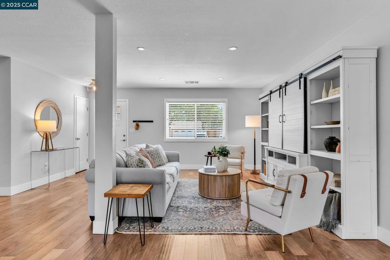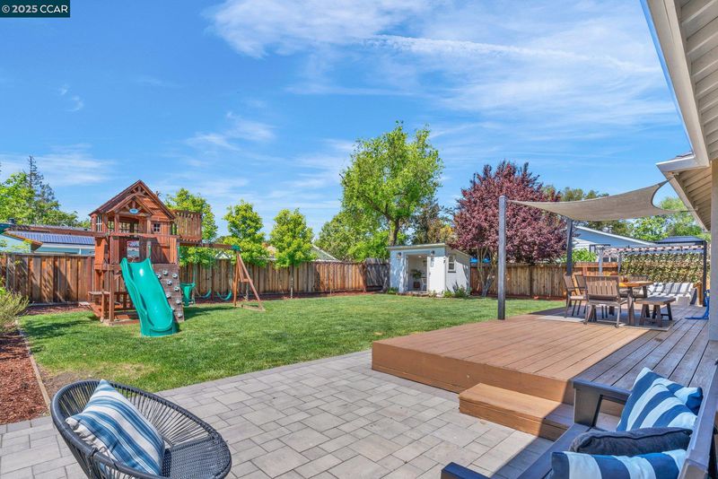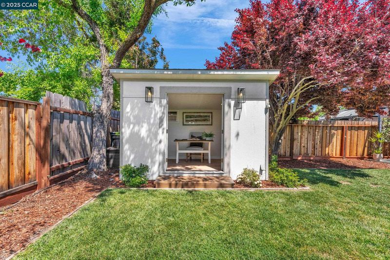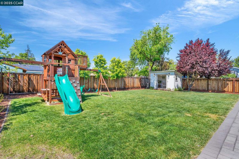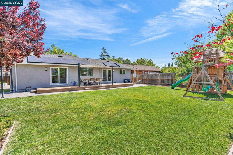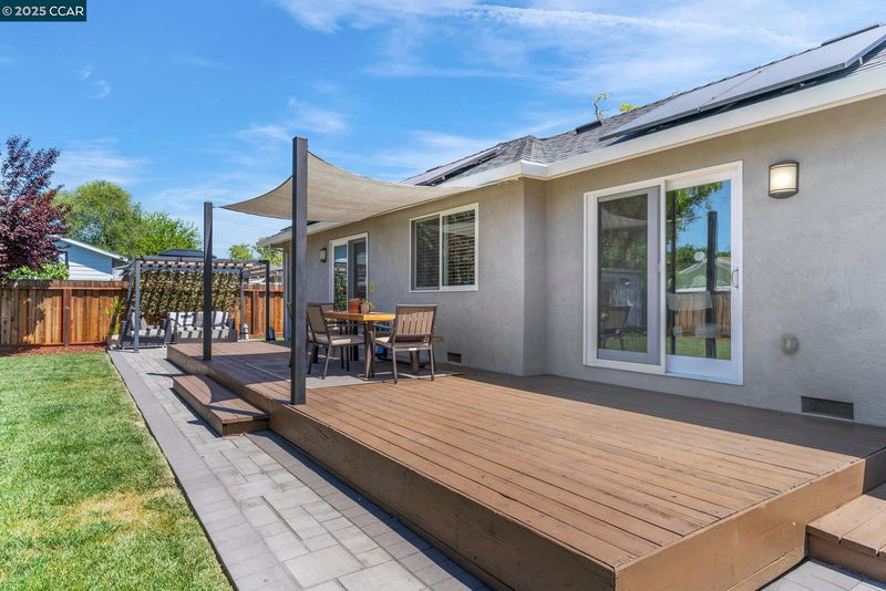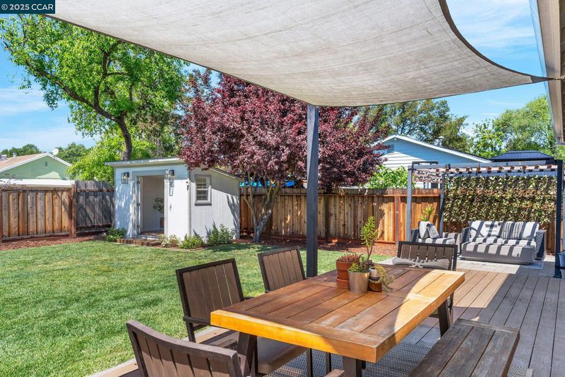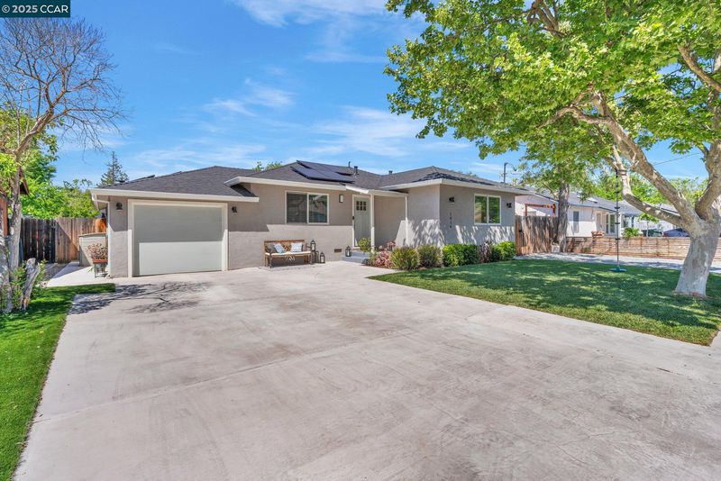 Welcome to this beautifully updated single-story residence tucked into one of Pleasant Hill’s most desirable neighborhoods. With 1,751 square feet of thoughtfully designed living space, this 3-bedroom, 2-bath home seamlessly blends timeless charm with modern upgrades. Originally built in 1947, the home has been tastefully refreshed throughout. The open-concept kitchen features a large central island—perfect for gatherings—alongside a gas range, stainless steel appliances, and generous storage. Rich engineered hardwood floors flow throughout the living areas, while both bathrooms showcase classic tile finishes and shower-over-tub designs. Additional highlights include a newer composition roof, solar energy system, tankless water heater, central A/C, EV charging, and dual-pane windows. The detached bonus space provides flexibility for a home office or creative studio. Set on a level 7,522 sq ft lot, the backyard invites indoor-outdoor living with an expansive deck, play structure, and low-maintenance landscaping. The front yard is equally inviting with fresh plantings and an automatic sprinkler system. With easily accessible trails, close proximity to top rated schools and a walkable library, this home blends comfort, convenience and style in one package