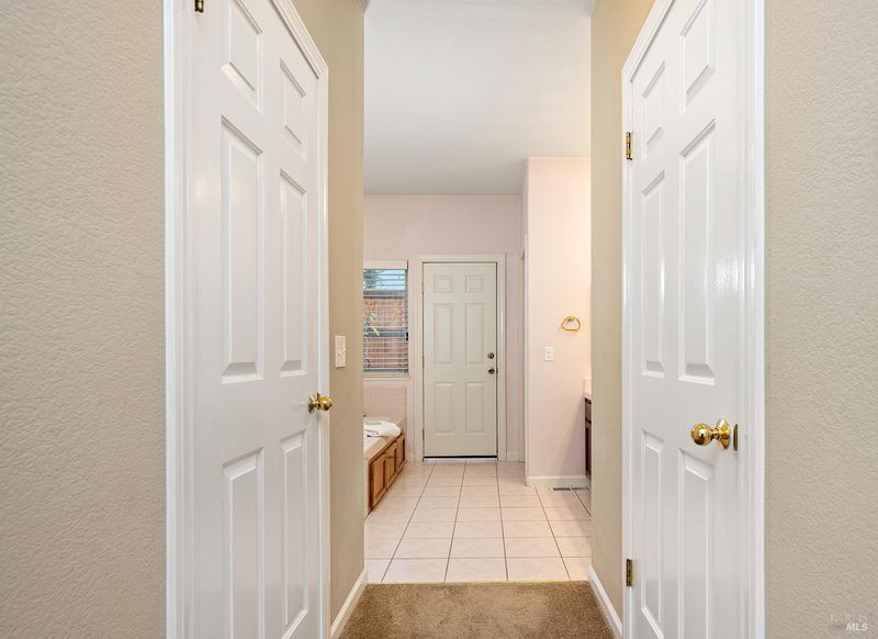- Jetted Tub, Outside Access, Shower Stall(s), Tile, Walk-In Closet