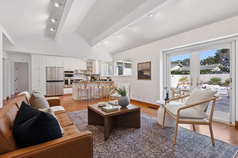 Welcome to Arbor Lane, a charming retreat nestled in one of the most serene and exclusive coastal enclaves.This delightful single-story home, located on the west side of Moss Beach, graces a beautifully landscaped double lot, just a short stroll from the ocean bluff. As you step inside, the formal living room offers a wonderful view of the park-like setting in the front yard, providing a tranquil space for relaxation. Adjacent to this is the formal dining room, where a picturesque bay window creates a serene backdrop for intimate gatherings. The heart of this home is the welcoming open-concept kitchen and family room, centered around a cozy fireplaceperfect for unwinding.French doors lead you to a private outdoor oasis, professionally designed in 2022. This entertainer's paradise is complete with a fire pit, hardscaped patio, and a hot tub, where you can enjoy the soothing sounds of the ocean on cool evenings. Modern conveniences such as air conditioning, central heating, and solar ensure your comfort year-round. Situated just blocks from the open space bluffs and the serene marine reserve, this property offers unparalleled access to nature and the pristine beauty of the forest. Immerse yourself in the scenic coastal wonders and enjoy the lifestyle that Arbor Lane has to offer.