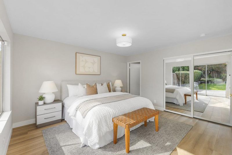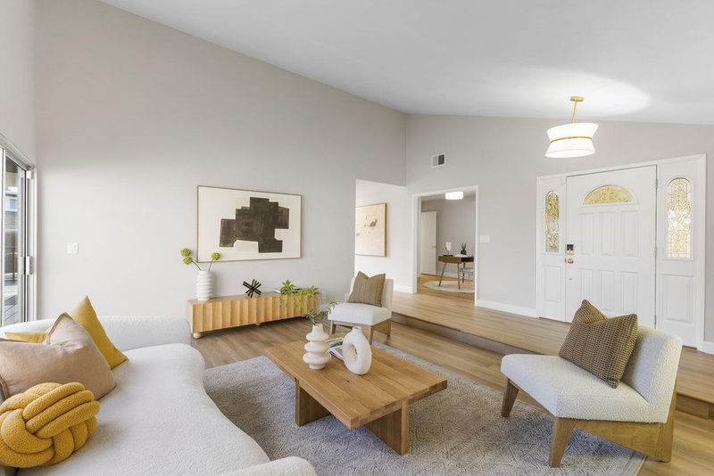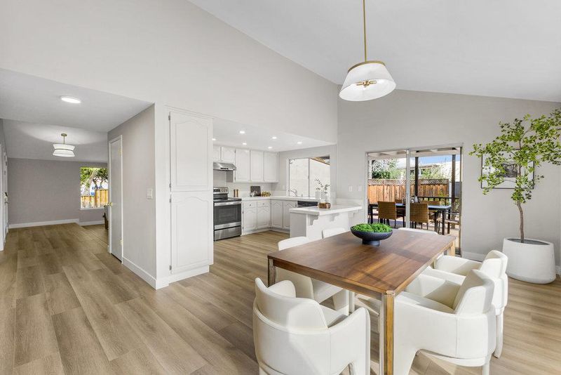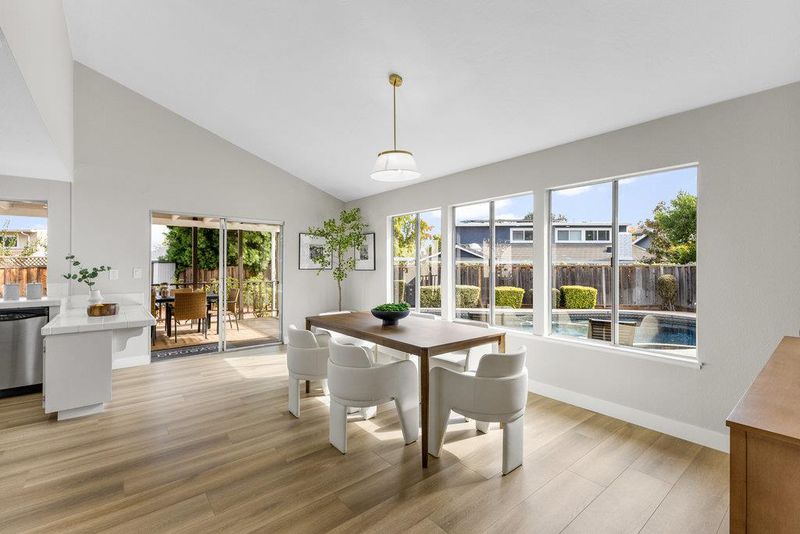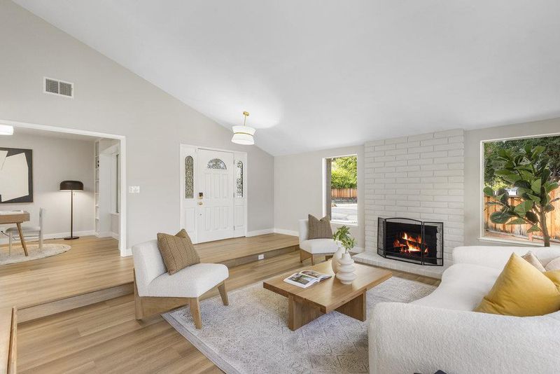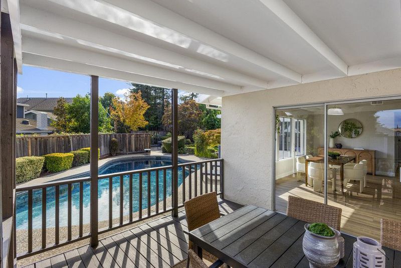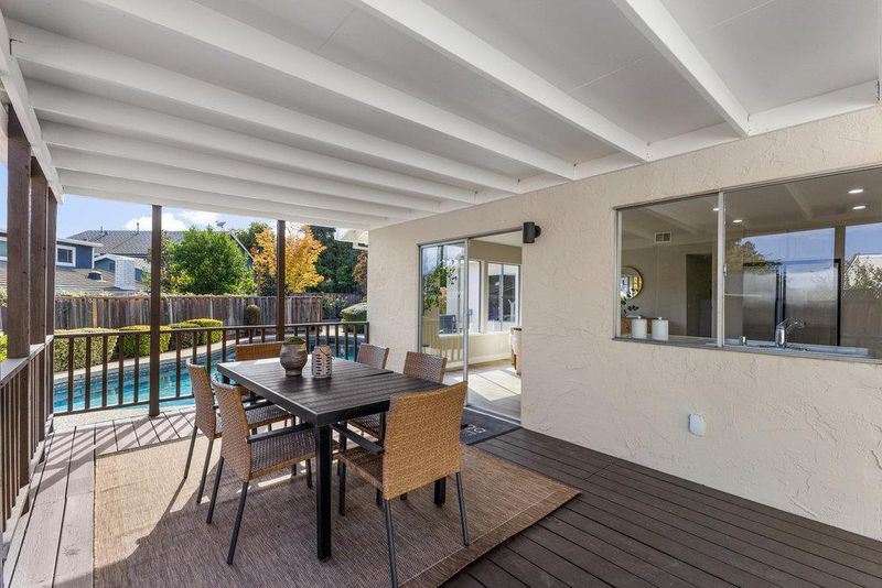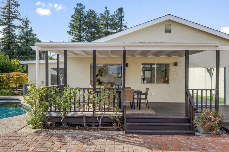 Beautifully updated ranch home on a quiet Almaden Valley cul-de-sac, where turnkey comfort meets indoor/outdoor living. An inviting front yard with a covered porch and lawn sets the tone. A designer front door with sidelights opens to a dramatic sunken living room with cathedral ceilings and a brick-clad fireplace. The convenient U-shaped kitchen with smart prep zones opens to the dining/family room for easy everyday connection. Fresh interior/exterior paint provides an ideal backdrop, while new LVT flooring runs throughout for a warm, cohesive finish. Updated bathrooms elevate the feel, and the primary suite offers a spa-like bath plus direct deck access for serene mornings. Sliding doors lead to a private resort backyard anchored by a stunning black-bottom pool. Redwood decks off the family, living, and the primary extend daily living for entertainging or just relaxing. Front and back lawns add flexible space for play, pets, and gardening. A new high-efficiency HVAC system keeps comfort steady year-round. Minutes to parks, trails, schools, and shops, with easy Silicon Valley access. Top rated SJ Schools: Los Alamitos Elementary, Castillero Middle, Pioneer High. Fresh, contemporary & perfectly placed, updated, inviting, and ready to enjoy 6222 Abbeyfield has it all.