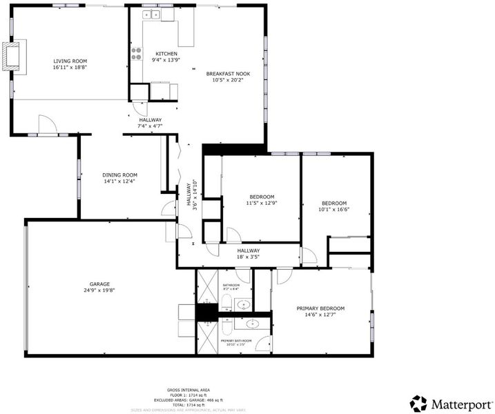 - Granite, Shower over Tub - 1, Skylight, Stall Shower, Tile