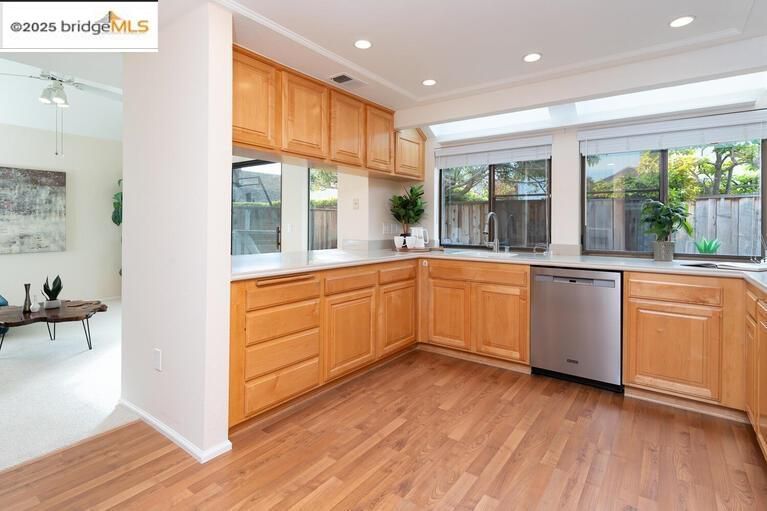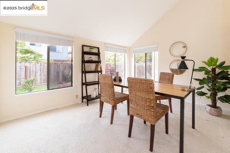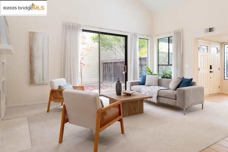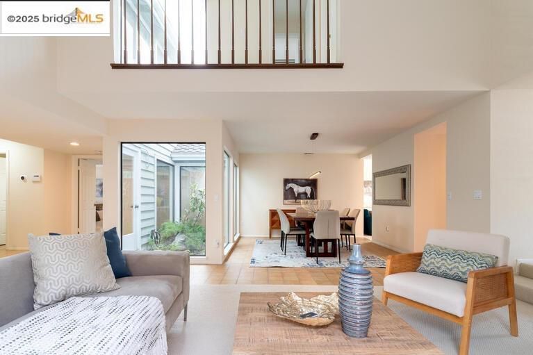 Harbor Bay Gem — Comfort, Space & Coastal Serenity 3+ Bedrooms | 2.5 Bathrooms | 2,463 Sq. Ft. | 2-Car Garage Welcome to this light-filled Harbor Bay residence offering timeless comfort and versatile living. Main Level Highlights Expansive primary suite with private patio — perfect for morning coffee or quiet evenings Tranquil central atrium filled with lush greenery, bringing the outdoors in Bright sunlit kitchen opening to a private, low-maintenance fenced backyard Living room with fireplace, family room, formal dining room, and large office/den—ideal for work, relaxation, and entertaining New carpeting adds warmth and comfort throughout Upper Level Two airy bedrooms with split bath (separate shower and vanity areas) for privacy and convenience Additional Features Spacious two-car garage with extra room for storage, hobbies, or a workshop Close to scenic greenbelt trails, parks, top-rated schools, shopping, and the Harbor Bay Ferry Terminal for an easy San Francisco