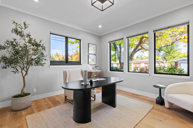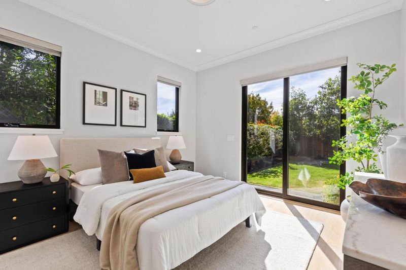 Modern design, impeccable craftsmanship, and curated finishes define this exceptional 2020 home in a premier neighborhood just one block from Red Morton Park. Every detail reflects designer quality, from tongue and groove wood paneling and artfully selected stone and tile to custom lighting and vanities. The open-concept great room centers on a striking feature wall with gas fireplace and extends through sliding glass doors to a covered patio, built-in barbecue, and spacious rear yard. A stunning kitchen with large island seating, butlers pantry, entertainment bar, and formal dining room anchor the main level, which also includes a bedroom suite and separate office. Upstairs are the primary suite with heated floor bath, two additional bedrooms and bath, plus a flexible-use lounge. Additional highlights include white oak floors, air conditioning, large laundry room, and EV charging in the 2-car garage, all just moments from vibrant downtown Redwood City.