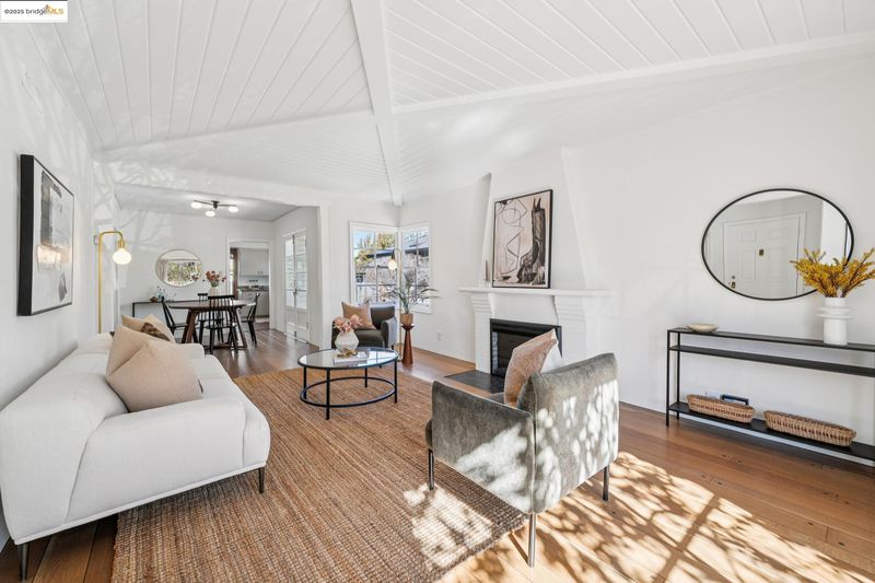 Welcome to 84 Begier, a spacious and thoughtfully updated 1938 bungalow tucked on a generous lot in one of San Leandro’s most convenient neighborhoods, Creekside. Behind the long driveway, you’ll find a detached garage and large shed offering abundant storage and flexible possibilities. Inside, the home blends vintage character with fresh updates; decorative tile-accented window sills, random plank hardwood floors, and a cozy electric fireplace add warmth to the inviting living room. The kitchen features a charming dining nook, refreshed finishes, and an adjacent laundry area with a utility sink & backyard access. The renovated bathroom feels crisp & modern, while the original brick side porch with its classic doors adds a storybook touch. Out back, you’ll fall in love with the lush, private yard; anchored by a stunning fig tree, a mature apple tree, & layered landscaping that creates distinct spaces for dining, lounging, and play. The detached garage has been enhanced with insulated walls, recessed lighting, & a side door opening to the garden, making it ideal for use as a home office, guest suite, or studio. Located moments from San Leandro favorites like Bluebird Pizzeria, Tio’s Mediterranean Grill, and the upcoming Sprouts Market at Centro Callan.