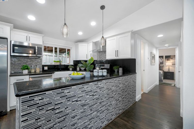 - Dishwasher, Gas Range, Microwave, Refrigerator, Counter - Solid Surface, Gas Range/Cooktop, Updated Kitchen