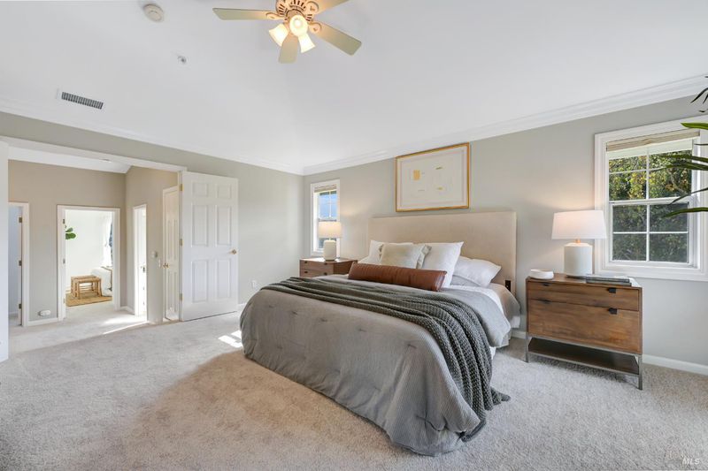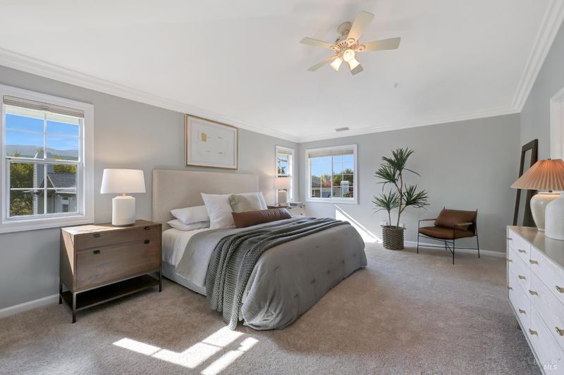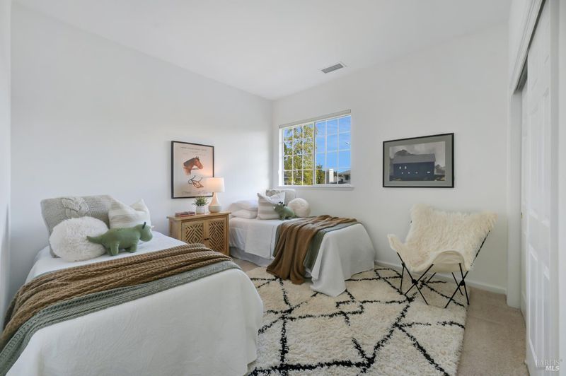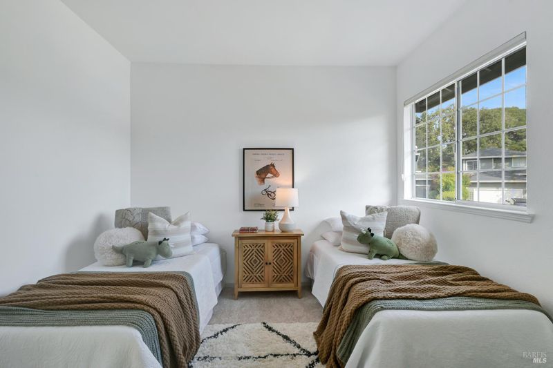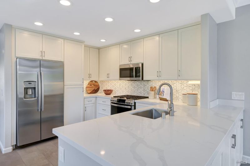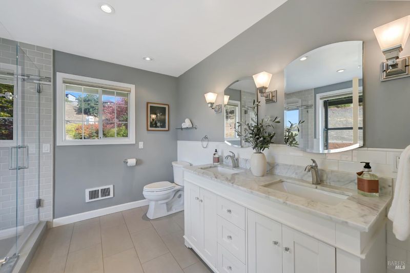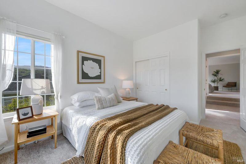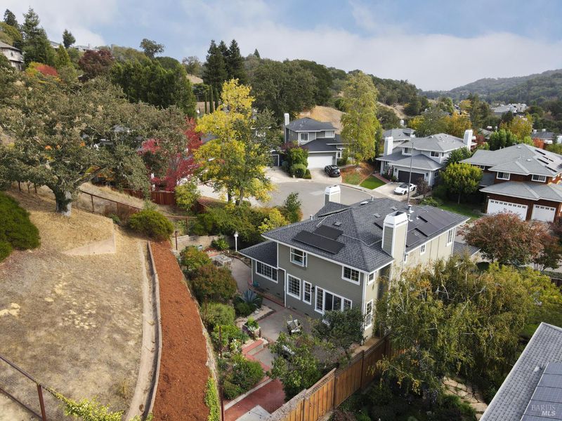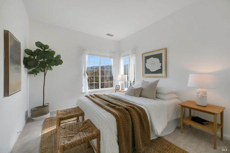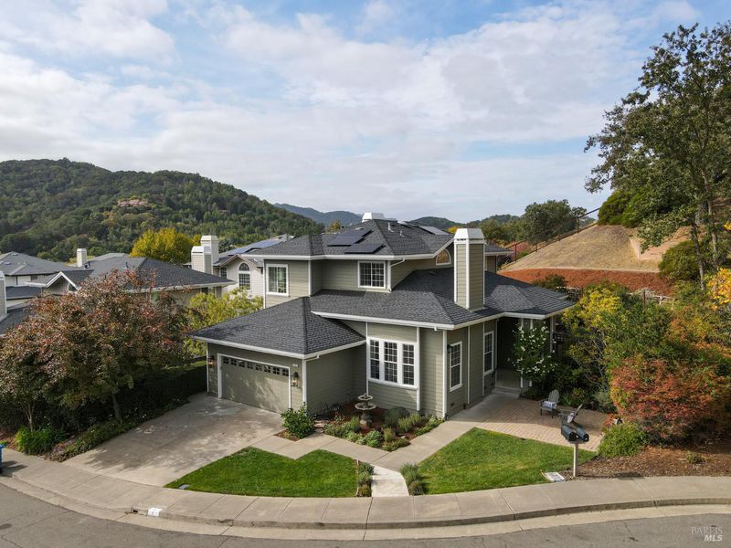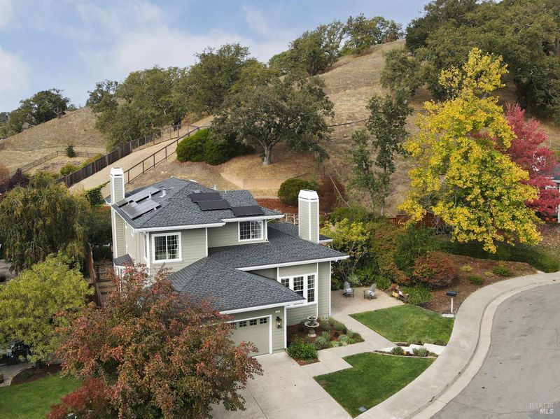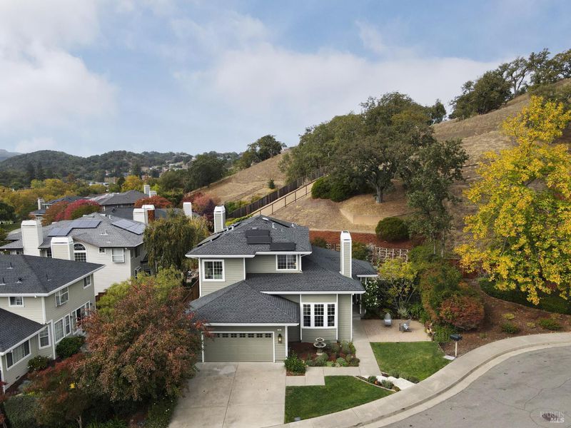 Welcome to a stunningly renovated residence nestled on the serene Blue Oak Court, a charming cul-de-sac in Novato, CA. This exquisite 4-bedroom, 3-bathroom home offers a harmonious blend of modern elegance and classic comfort, perfectly framed by breathtaking views of the surrounding hills. The main level boasts an inviting bedroom and full bath, ideal for guests or a private home office. Step into the heart of the home where the kitchen and family room shine with a 2024 remodel, featuring all-new appliances and sleek flooring that speak of refined taste. The master bath, thoughtfully updated in 2018, offers a tranquil retreat, while the downstairs bathroom, revamped in 2023, showcases contemporary design. Efficiency meets technology with a 16-panel, 5.2 kW owned solar system installed in 2023, complemented by a 2020 electrical system upgrade. Stay comfortable year-round with the new AC and furnace, and enjoy the convenience of a 2024 washer and dryer. The roof, installed in 2015, assures durability. This home is freshly painted, with refinished hardwood floors that exude warmth and sophistication. The front lawn and beautifully landscaped garden, crafted by a master gardener, enhance the home's curb appeal, providing a peaceful outdoor oasis.