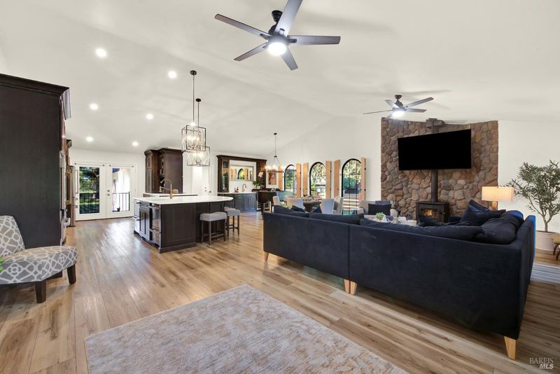 Country Estate with Four Homes on nearly 20 Acres! Escape to peace and privacy on this stunning property, surrounded by majestic redwoods, mature shade trees, and a variety of fruit-bearing trees. Walking paths wind through the landscape. A tranquil seasonal pond enhances the landscape, accented by a storybook-style bridge and gazebo adding both beauty and character to the property. The main residence has been fully remodeled with modern luxury and comfort in mind. The gourmet kitchen is a showstopper, featuring a massive island, bar, and a dedicated coffee area. Spacious bedrooms and spa-like bathrooms with walk-in showers and soaking tubs create a relaxing retreat. Cozy Cottage: Updated, 2 bedrooms, 2 baths, central heat and air, featuring an oversized primary suite and a stylish walk-in shower. Trailer Home: 2 bedrooms, 1 bath ideal for guests, extended family, or rental income. Studio Apartment: Located above the barn, offering 1 bedroom, 1 bath, a full kitchen, and a large living area perfect as a private guest suite or creative workspace. Multiple barns for equipment storage, stalls, kennel barn with dog wash station and bathroom. Whether you're looking for a multi-family compound, an income-producing property, or simply a serene country escape, this unique estate offers it all!