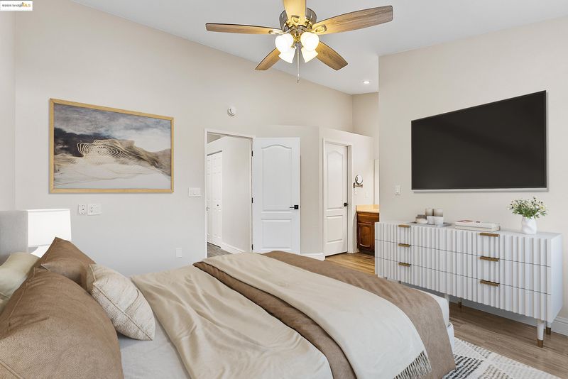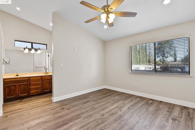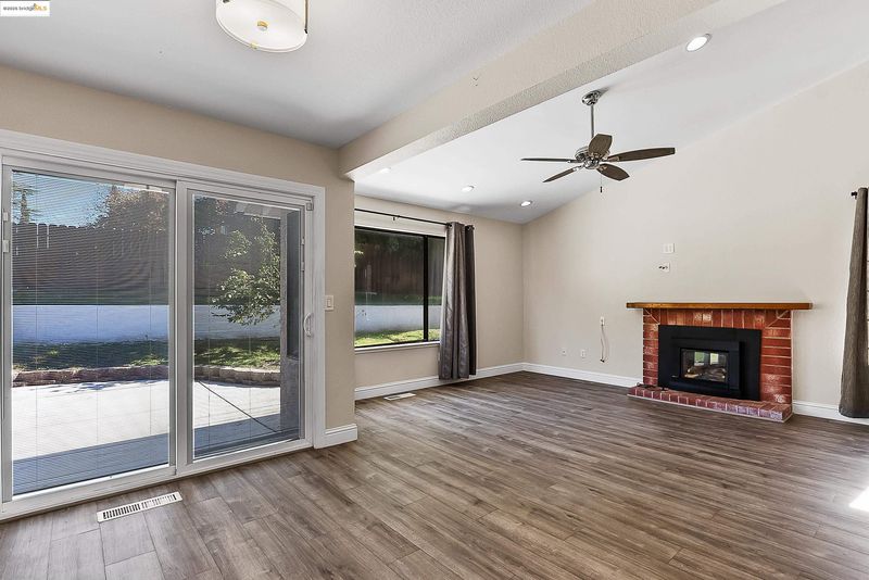 Welcome to this charming 3-bedroom, 2.5-bathroom home offering 1,422 sq. ft. of comfortable living space. Tucked away in a court location, this property features side yard access and a spacious backyard with an expansive patio—perfect for entertaining or relaxing outdoors. Inside, enjoy fresh interior paint, rich wood cabinetry, granite slab countertops, updated vinyl flooring, and carpet. The inviting family room features a cozy fireplace, ceiling fans, and recessed lighting. The home also includes an inside laundry room and an attached two-car garage. Energy-efficient living is yours with the owned solar system, helping reduce utility costs. Conveniently located close to major commute routes, shopping, and schools—this home offers both comfort and convenience.