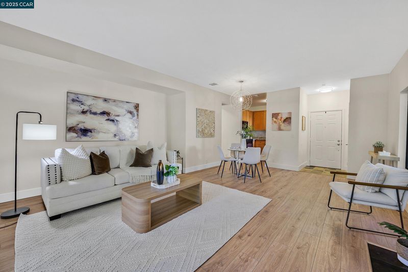 Meticulously upgraded, this Copper Ridge condo redefines modern elegance. Nestled among majestic redwood trees, this light-filled downstairs end-unit features luxury vinyl flooring, a stylish kitchen with stone countertops, custom backsplash, and wood cabinetry and remodeled bathrooms with on trend fixtures and finishes. Enjoy seamless access from the garage directly to your front door for added convenience. The inviting primary suite offers two closets, a spa-inspired bath, and room for a king bed. The secondary bedroom and full second bath are ideal for guests or a home office. Additional highlights include a new HVAC system and inside laundry. Relax on your private patio surrounded by nature. Copper Ridge is a gated community offering walking trails, a clubhouse with gym, pool, spa, tennis courts and beautiful hillside views. Top-rated San Ramon schools, shops, Club Sport Fitness, Canyon Lakes Golf Course, City Center, and freeway access are just minutes away—perfect for today’s busy lifestyle!