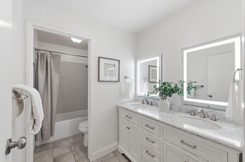 Double Sinks, Full on Ground Floor, Granite, Primary - Stall Shower(s), Shower over Tub - 1, Tile, Updated Bath