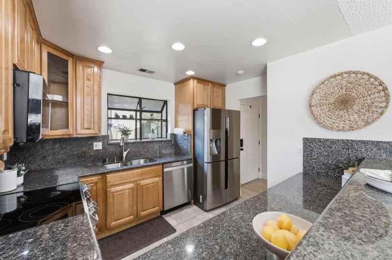 Rare, single-story end unit in the coveted Newpark Village Community. Flooded with natural light, this home features an airy open-concept kitchen and living layout boasting vaulted ceilings, recessed lighting, and brand-new flooring throughout. The spacious kitchen offers granite countertops, stainless steel appliances, a charming planter window, and a convenient breakfast bar that flows seamlessly into the dining and living areas. Relax in the expansive living room by the cozy fireplace, or step through large sliders to a private, landscaped backyard complete with a deck, grass area, and extra storage. Retreat to the primary suite, which offers a private slider to the yard, custom built-in shelving, walk-in closet, and a renovated en-suite bathroom. Two additional spacious bedrooms feature plantation shutters  and plush new carpet. The renovated hall bathroom offers dual sinks, granite countertops and an updated shower. Additional amenities include AC and in-unit laundry. Located in a premier community with a pool, spa, tennis courts, gym and clubhouse, this home provides resort living at its best. Excellent location near many shopping and dining options, this home is also convenient to commute corridors and BART.