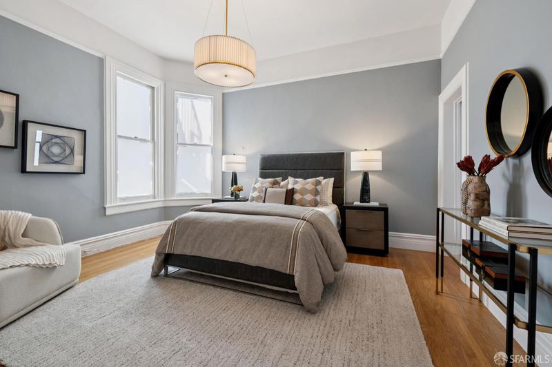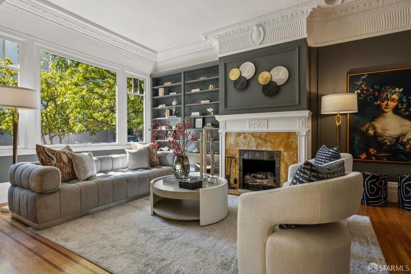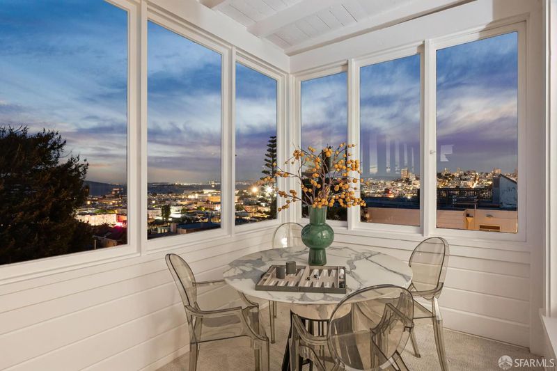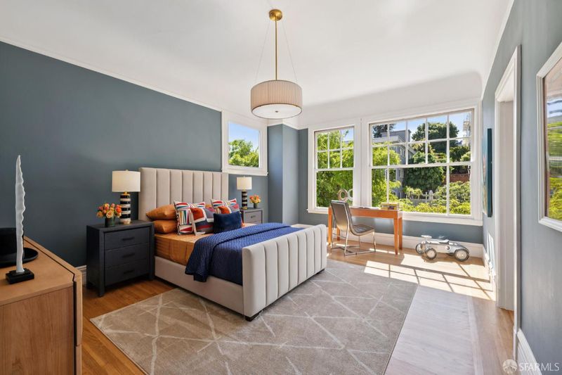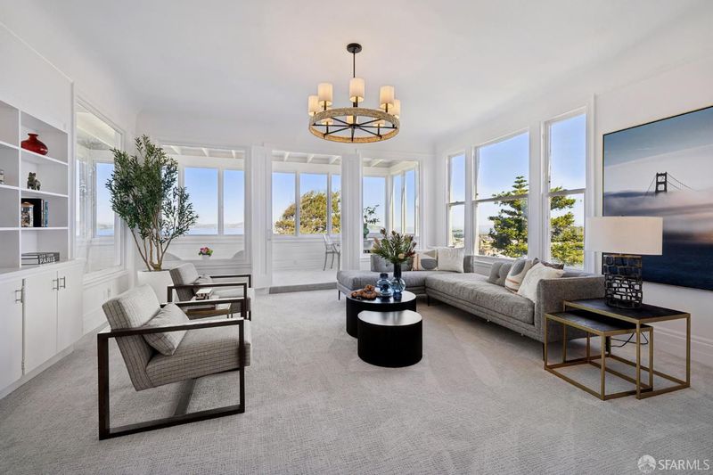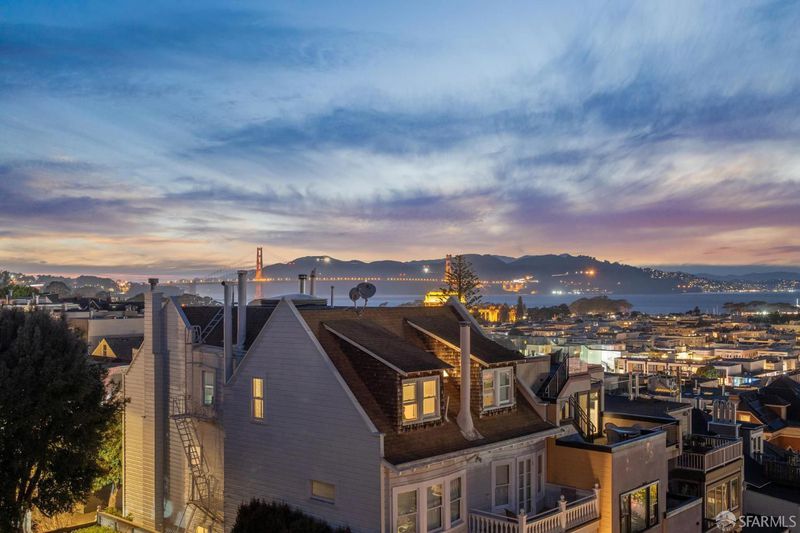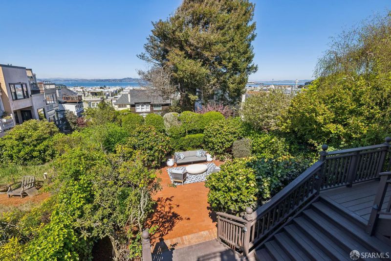 This elegant and stately residence is ideally situated on a premier Cow Hollow block, offering breathtaking water views from three expansive levels. Nestled on a generous lot, this home is fully detached, ensuring an abundance of natural light throughout. Thoughtfully maintained, the home retains beautiful period details and timeless architectural character. The main level boasts formal living and dining spaces, a substantial family room with dramatic vaulted beamed ceilings, and an updated kitchen complemented by a cozy breakfast area. The family room seamlessly transitions to a spacious deck showcasing stunning water views and provides effortless access to the private, manicured garden, perfect for outdoor entertaining. This floor also features a convenient laundry room and powder room. Ascending to the upper level, you'll find a large primary suite with captivating views, a sitting area, and a walk-in closet, accompanied by three additional bedrooms and two more bathrooms. The top floor presents a remarkable pent room, featuring unparalleled vistas stretching from the Golden Gate Bridge to Coit Tower, along with its own kitchen, two additional bedrooms, a full bath, and independent accessideal for guests or entertaining. On the ground level is a three-car garage, abundant storage options, development potential, and an extra laundry area. With a Walk Score of 97, this home is truly a Walker's Paradise, placing residents in the heart of vibrant city living while enjoying the serene backdrop of water views. This is a rare opportunity to enjoy as-is or reimagine in one of San Francisco's favorite neighborhoods.