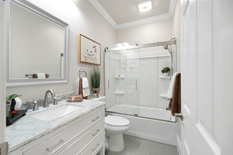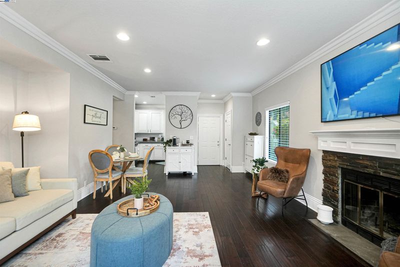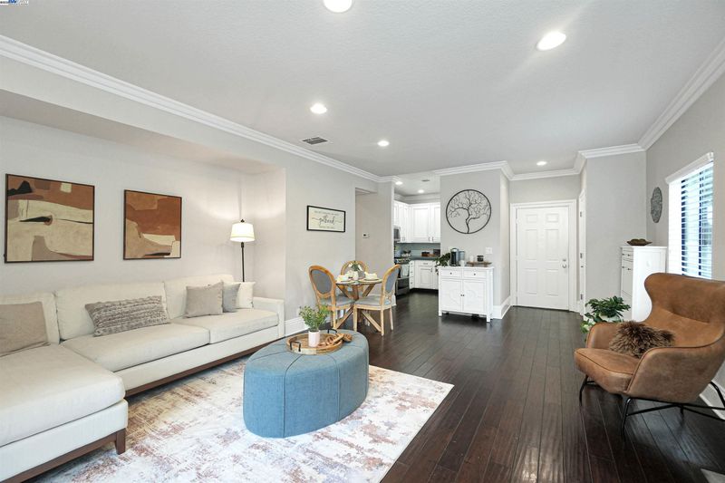 Welcome to Copper Ridge, where everyday living feels calm, comfortable, and surrounded by nature. This inviting ground-floor end unit brings in beautiful natural light and offers an easy, single-level layout that works well for first-time buyers, down-sizers, or anyone looking for a relaxed, low-maintenance home. Step inside to find thoughtfully updated spaces, including updated kitchen and bathrooms, engineered hardwood flooring, stainless steel appliances, LG washer/dryer, recessed lighting, crown molding, and generous 9-foot ceilings that add an airy feel. The private patio offers a peaceful nook to enjoy your morning coffee, and the detached garage provides convinience. The Copper Ridge community is known for its resort-inspired amenities, including tree-lined walking paths, a clubhouse, fitness center, pool, spa, and tennis courts, creating a balanced lifestyle whether you want to unwind or stay active. You’re just minutes from top-rated San Ramon schools, City Center’s dining and shopping, local fitness studios, golf courses, and convenient freeway connections. Move-in ready, beautifully maintained, and located in one of San Ramon’s most desirable gated communities, this home makes everyday living feel effortless.