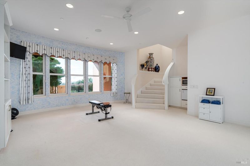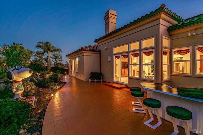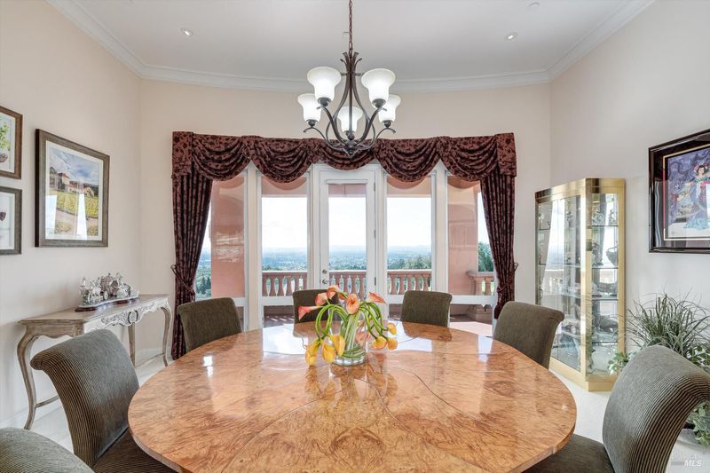 Perched above Fountaingrove Lake with sweeping views of city lights and the coastal range, this nearly 5,400 square foot custom residence offers grand scale living in the prestigious Skyfarm community. Built in 2002 and meticulously maintained, the home sits on just over one acre and blends classic architecture with exceptional functionality. Architectural columns and graceful archways define the main living spaces. The formal living room with fireplace and integrated entertainment system opens to the rear terrace for seamless indoor and outdoor entertaining, complemented by a wet bar with multiple refrigerators and a dishwasher drawer, for added convenience. A generously sized formal dining room captures breathtaking valley views and is supported by an adjacent entertainer's pantry, enhancing both everyday functionality and large scale hosting. A richly appointed library with porch access provides an ideal office or retreat. The gourmet kitchen features dual islands, Sub-Zero built-in refrigerator and freezer, 48-inch six burner Thermador range with dual ovens, Miele steam oven, warming drawer, and custom cabinetry. An outdoor island with natural gas cooking extends entertaining to the terraced rear yard featuring rock outcroppings and multiple seating areas. The private primary suite includes a fireplace, spa-inspired bath with steam shower and jetted tub, dual vanities, separate water closets, and walk-in closets. A second en suite bedroom is located on the main level. The lower level offers a spacious great room, two additional bedrooms, craft or wellness room, and a temperature controlled wine cellar designed for approximately 700 bottles. An elevator connects both levels, enhancing accessibility and long term livability. Additional features include dual HVAC systems, a 38kW natural gas generator, central vacuum, two laundry areas, and a finished three car garage. A classic estate offering expansive living, panoramic vistas, and an elegant canvas for personalization in one of Santa Rosa's most distinguished neighborhoods.